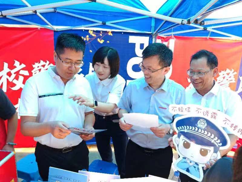9月12日,是2023年国家网络安全宣传周校园日,也是我校部分学院2023级新生报到日。当天起,校园里设置了2个网络安全宣传活动点,通过现场发放《国家网络安全宣传手册》、播放国家网络安全宣传片、现场扫码答题有奖活动、现场抽题问答有奖活动等形式,吸引了大批师生驻足参与。活动邀请了镜洋镇政法委员、武装部部长王为平、镜洋镇派出所警官严泽炜、福清网安大队成员等到场指导,Beat365党委书记杨振坦、党委副书记、院长何东进、党委副书记王振亮、纪委书记陈坛春等人亲临现场参与活动,现场气氛十分热烈。