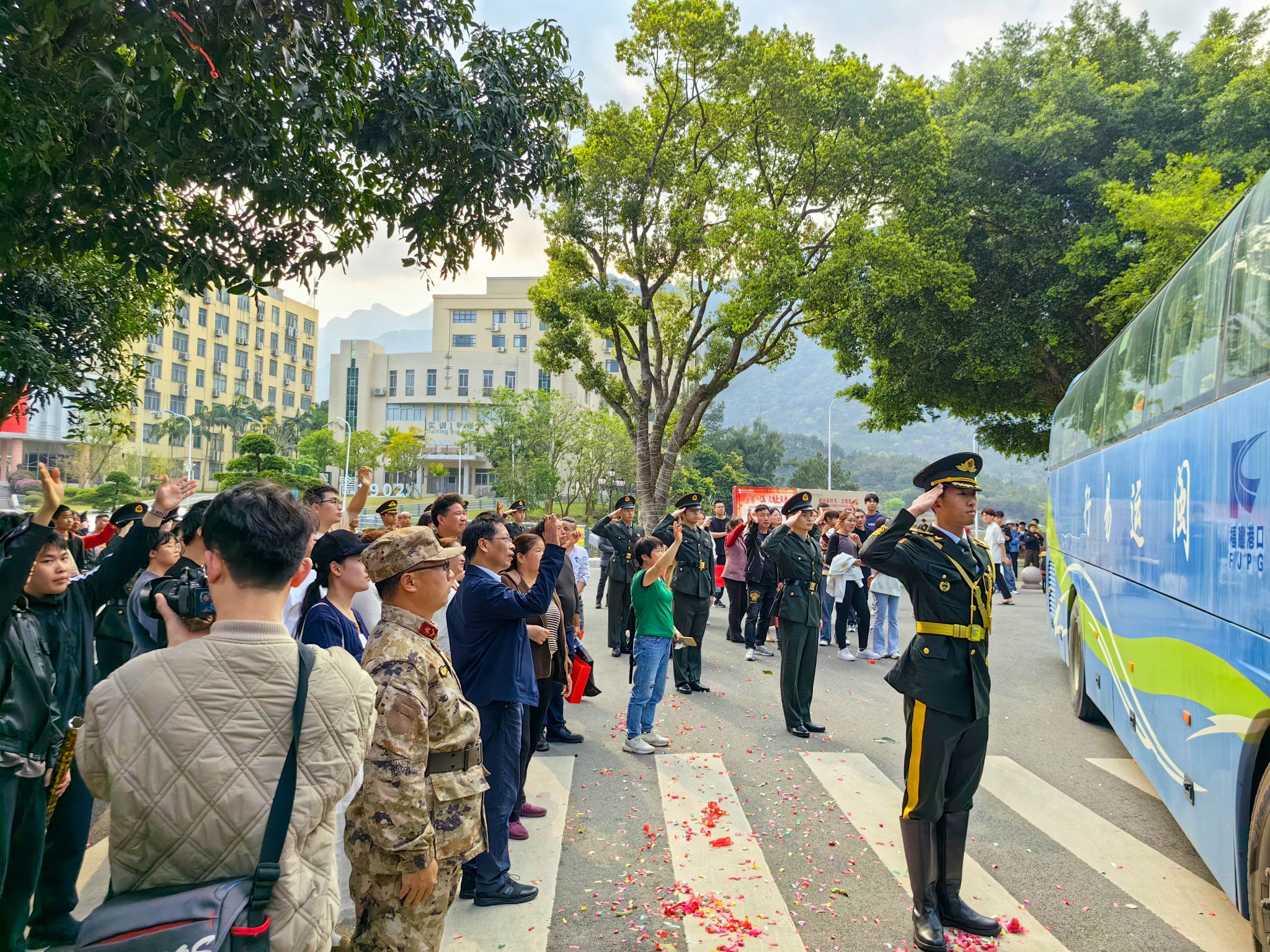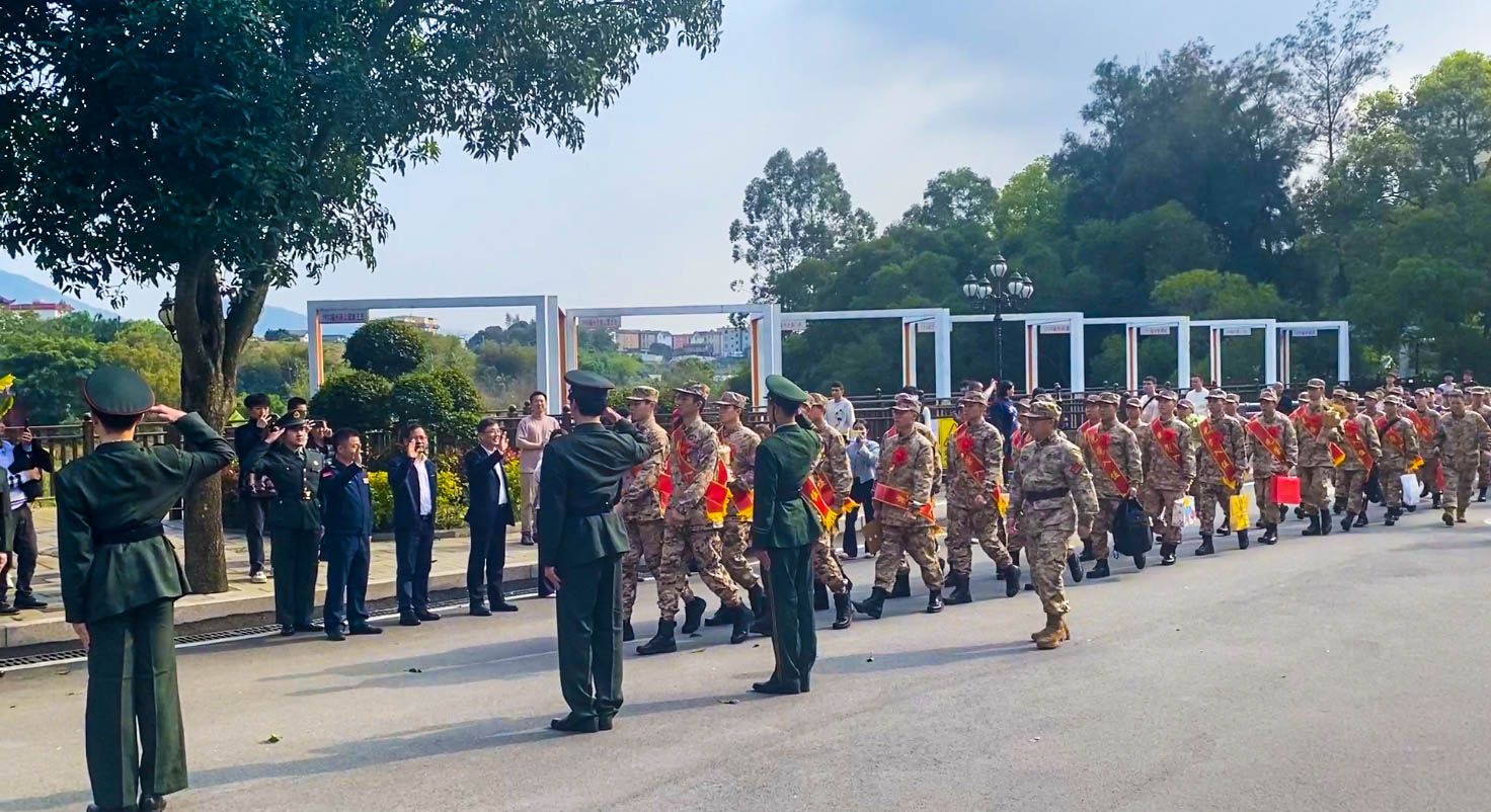 在激情昂扬的鼓声中,在礼花的绽放中,在老师、家长、同学们的殷切目光中,全体新兵踏上校车奔赴绿色军营,开启参军报国的光荣征程。