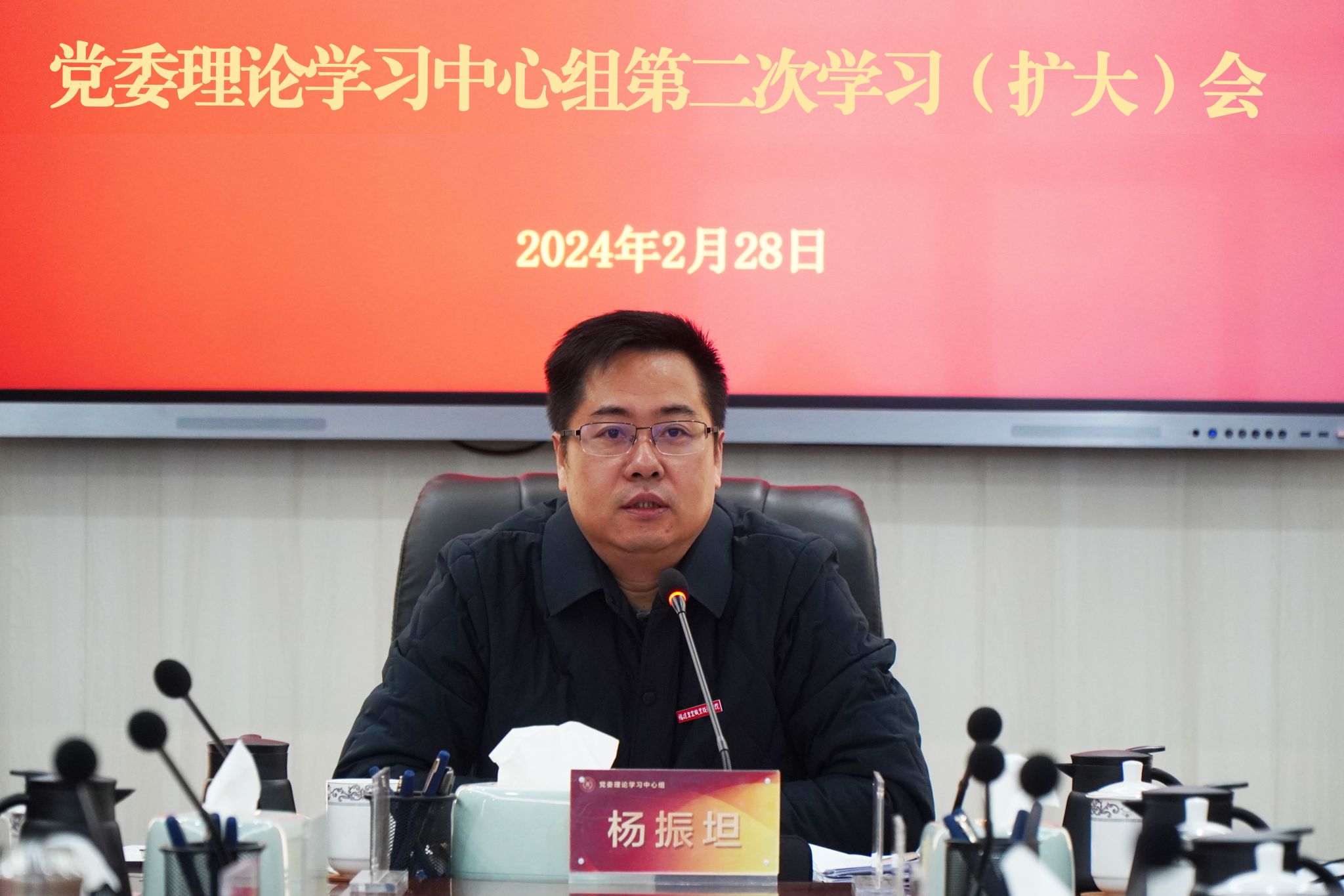 2月28日,学校党委书记杨振坦主持召开2024年党委理论学习中心组第二次学习(扩大)会,开展习近平总书记重要讲话重要指示批示精神、重要文件精神专题学习及深化拓展“三争”行动专题集中研讨。学校领导班子成员、中专部负责人、全体中层正职干部参会。