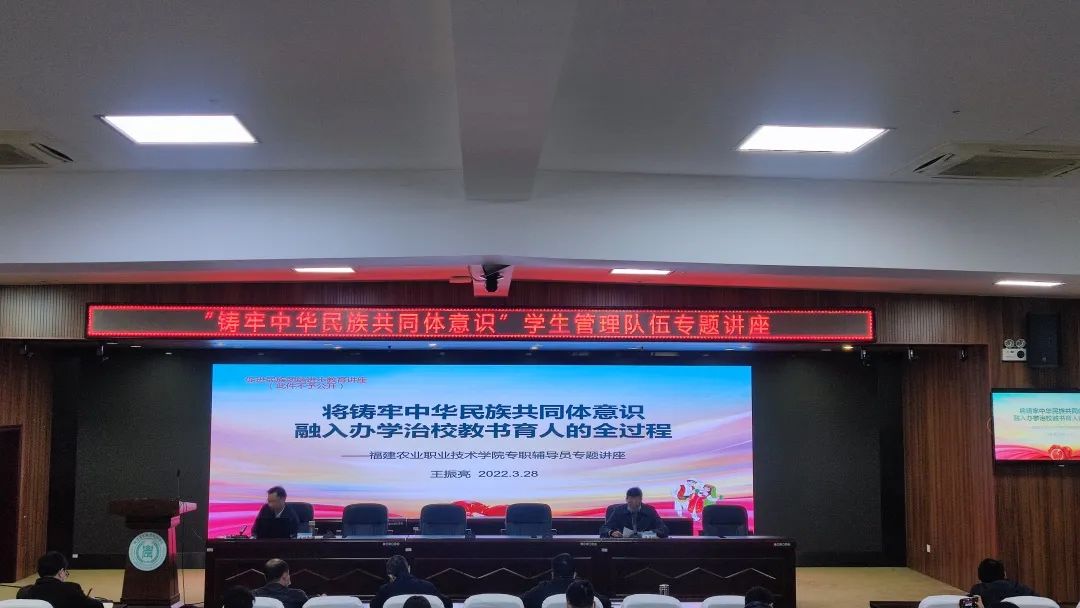 “高校是精神文明建设的主阵地,我们要引导学生深刻认识多元一体的中华民族大格局,将共同体理念植入到日常的思想政治教育和管理服务工作中。”3月28日,Beat365中文官方网站学生管理队伍专题讲座上,党委副书记王振亮为辅导员们与思政工作者做题为“将铸牢中华民族共同体意识融入办学治校教书育人的全过程”的报告。