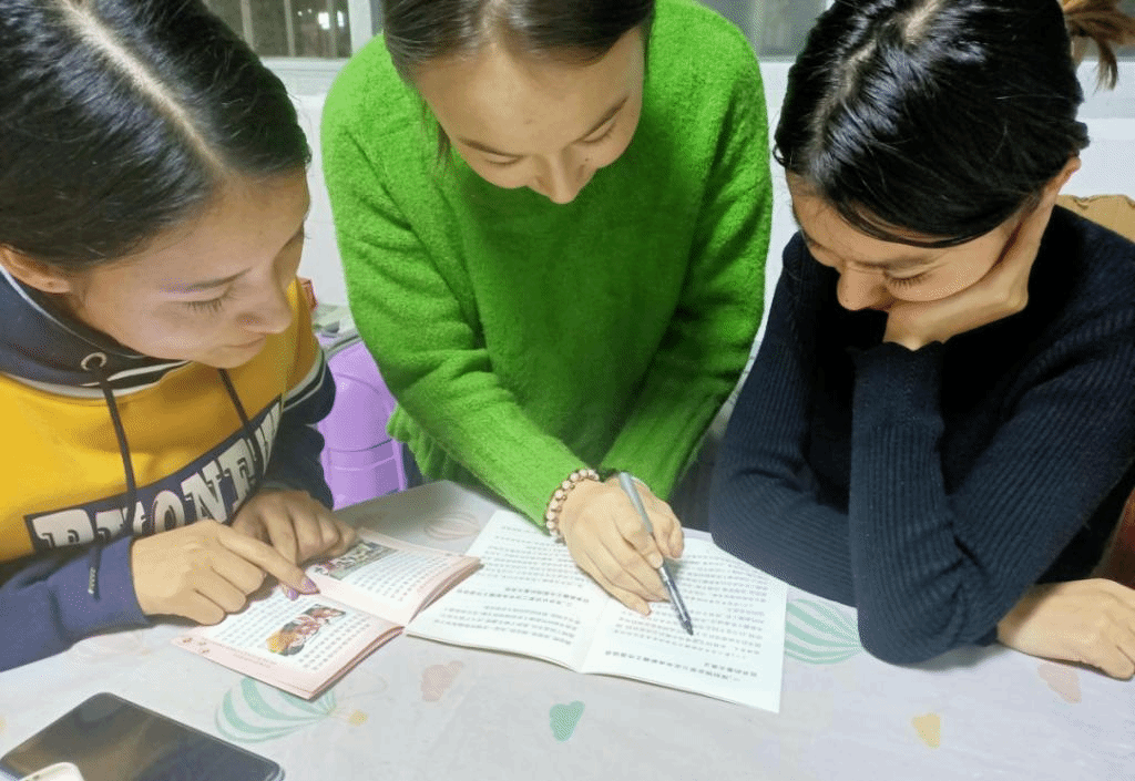 与少数民族学生在一起