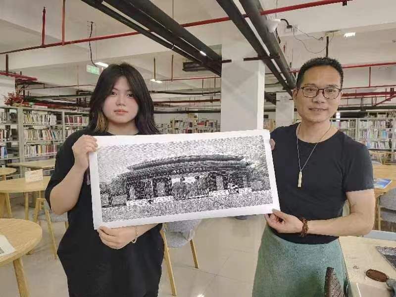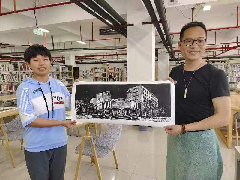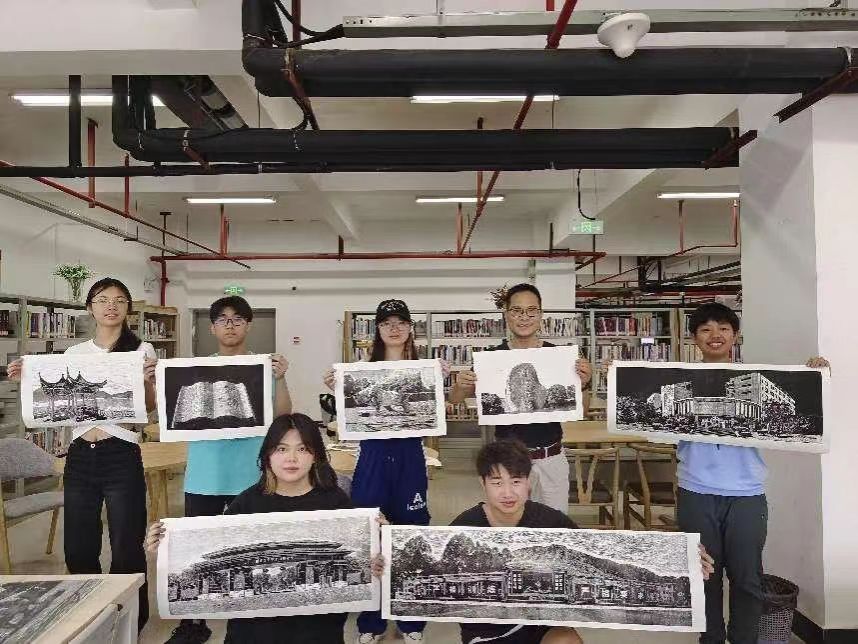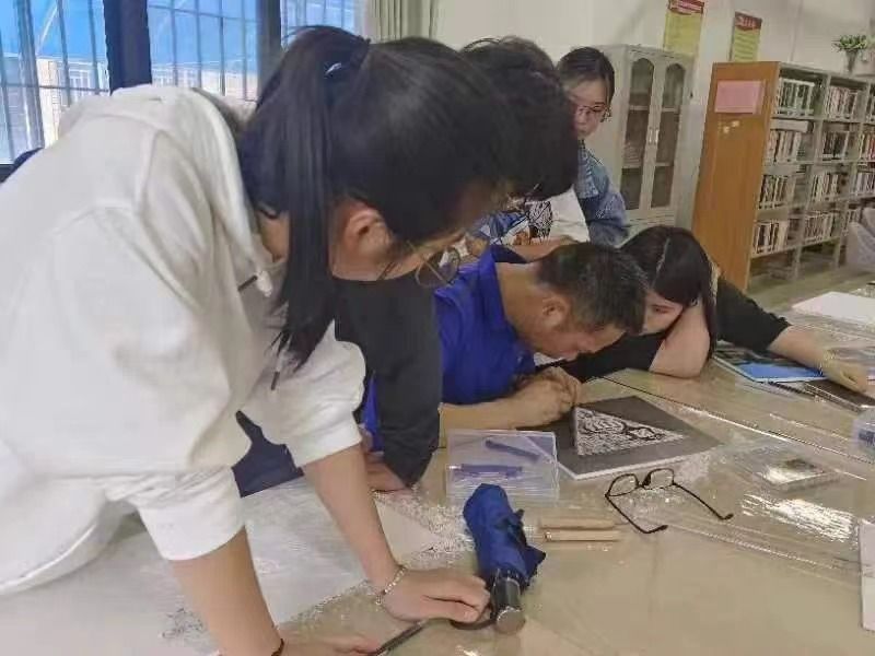 2024年4月24日至5月22日,Beat365中文官方网站第三届美育文化节期间,学院特邀福建省船政版画非遗传承人檀俊灶老师进校,手把手向同学们传授非遗版画传统技艺。参训同学们热情高涨,在紧锣密鼓的短训之后,仅用了一周时间就各自完成了创作,并表示将继续钻研版画技艺,持续创作新的作品。