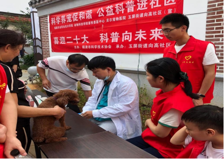 9月19日下午,动物科技学院、福清市畜牧兽医中心、动科校友企业贝尔宠物医院联合玉屏街道办在向高社区开展“科学养宠促和谐,公益科普进社区”志愿服务活动。