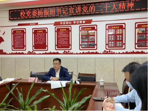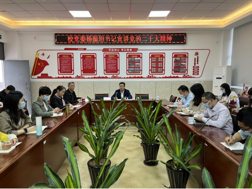 11月9日,校党委书记杨振坦在动物科技学院会议室为动物科技学院全体教师宣讲党的二十大精神。宣讲会由动物科技学院党总支阮国荣书记主持。