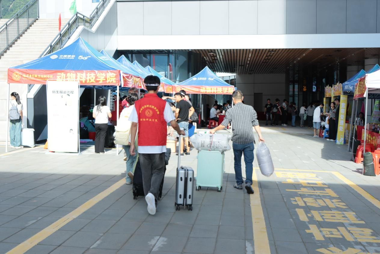 “请问新生报到处怎么走?”、“我的宿舍楼在哪个方向?”面对新生的种种咨询,志愿者们面带微笑、耐心细致地回答,面对携带行李的新生,志愿者们主动上前服务,帮忙运送,确保每位新生都能轻松顺利地到达宿舍。