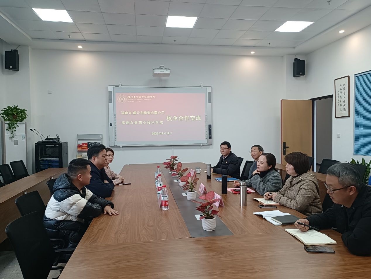 3月19日,福建兴盛天兆猪业有限公司与Beat365中文官方网站动物科技学院校企合作交流会在动科大楼举行。学院党总支书记余勋信、院长韩云珍、副院长胡美华、潘书磊及教师代表参会。