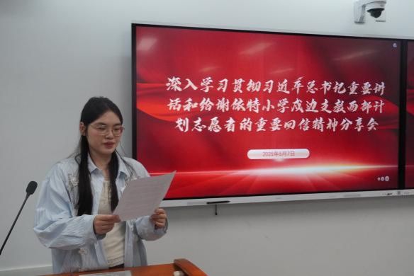 2025年5月7日,动物科技学院在动科大楼305教室开展深入学习贯彻习近平总书记重要讲话和给谢依特小学戍边支教西部计划志愿者的重要回信精神分享会。本次分享会旨在加强对广大青年学子的政治引领,更好地团结、组织、动员广大青年学子到西部去、到基层去、到祖国最需要的地方去,在中国式现代化建设中挺膺担当。