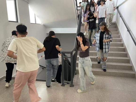随着地震警报声响起,师生们迅速进入应急状态,在工作人员的指挥下,师生们按照预案路线有序疏散,很快便撤离至安全区域。整个过程紧张有序,达到预期效果。