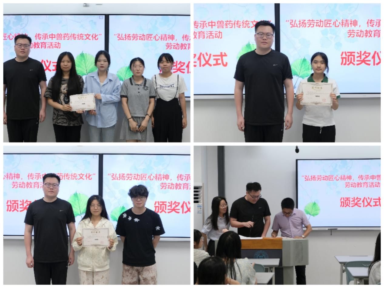 随后,在热烈的掌声中,洪渊副书记、陈芬老师和叶延嵛老师共同为获奖团队代表颁发荣誉证书,每一张证书都承载着同学们一学期的辛勤付出和对中兽药文化的初探热忱。