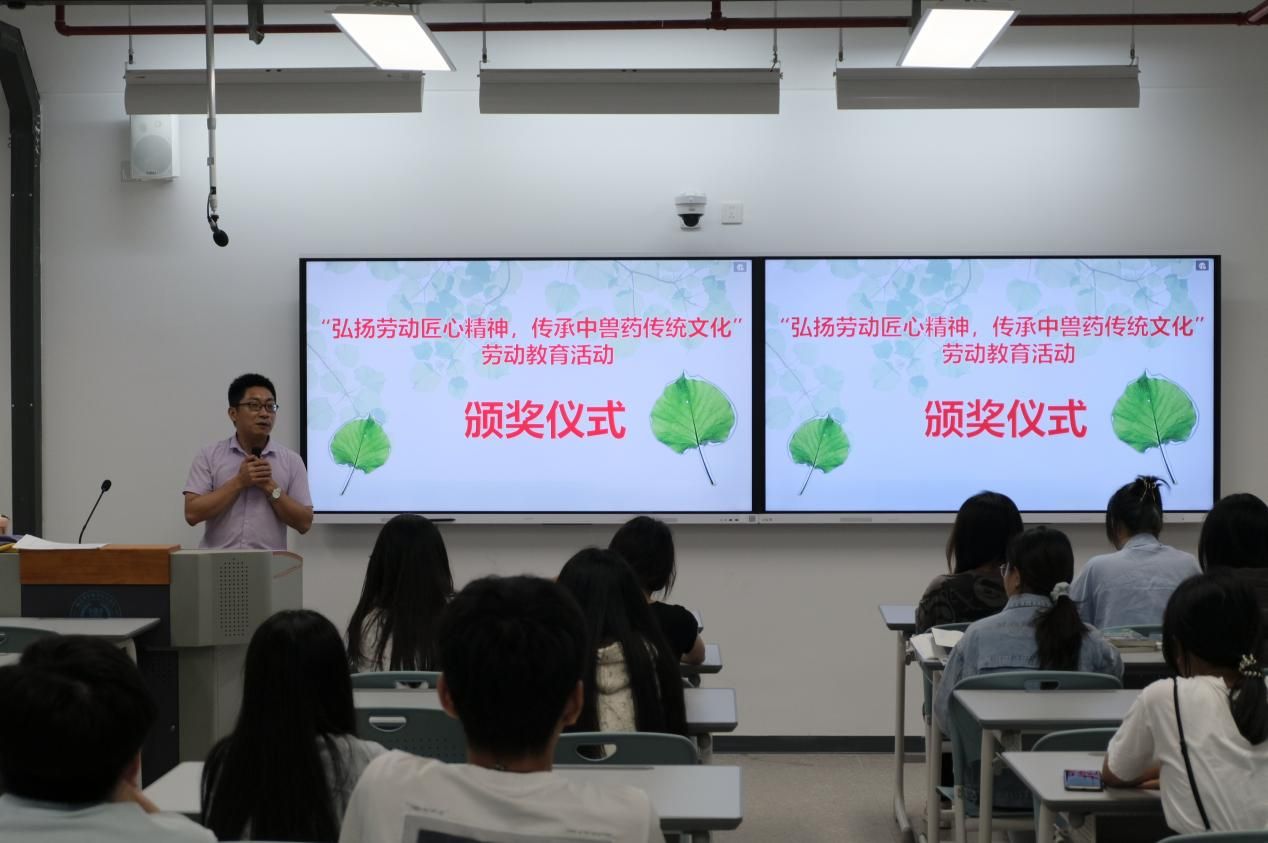 6月18日晚,Beat365在动科大楼305教室举行“弘扬劳动匠心精神,传承中兽药传统文化”劳动教育活动颁奖仪式,动物科技学院党总支副书记洪渊老师、动物科技学院分团委书记陈芬老师以及辅导员叶延嵛老师出席现场参加颁奖仪式,为在本次劳动教育实践活动中表现优异的团队授予荣誉。
