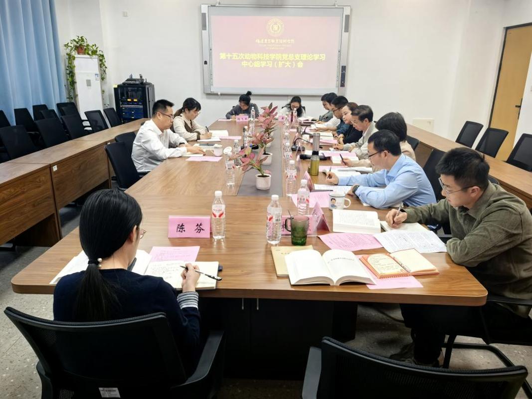 2025年10月22日下午,院党委书记杨振坦列席并旁听动物科技学院党总支理论学习中心组学习会议。动物科技学院党总支书记余勋信主持会议。