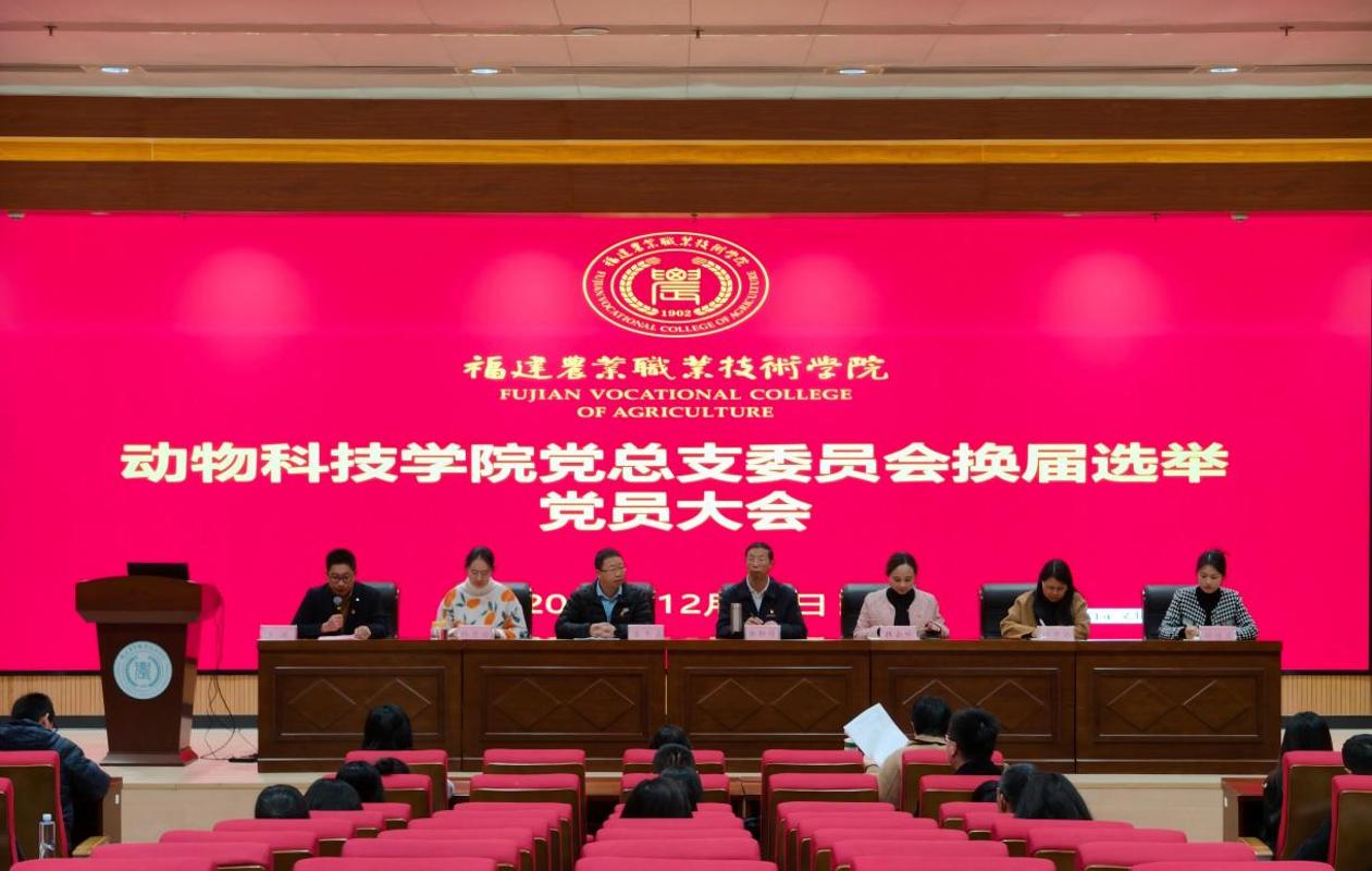 2025年12月10日,动物科技学院党总支换届选举大会在动科大楼学术报告厅隆重召开。学院党总支全体党员参加了本次大会。会议由院党总支副书记洪渊主持。