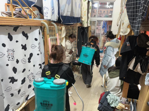 春季是传染性疾病的多发季节,为确保春季学期开学各项安全工作落实到位,从紧从严从细抓好新型冠状病毒感染“乙类乙管”下学校疫情防控各项举措,优化学生学习、生活环境,保障学生生活平稳有序进行。在各宿舍按要求做好常规清洁和消杀防护的前提下,学生党支部组建以学生党员和入党积极分子为主要成员的宿舍消杀志愿服务队,开展宿舍卫生消杀强化工作,营造良好宿舍生活环境。