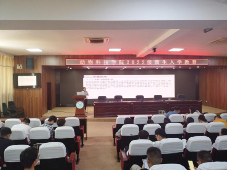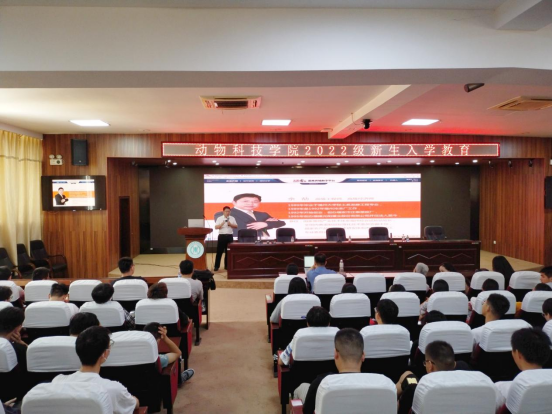 阮国荣书记为新生们介绍了动科学院的发展历史、办学理念等情况,并从生活、学习两方面对新生未来的大学生活进行了正确的引导。