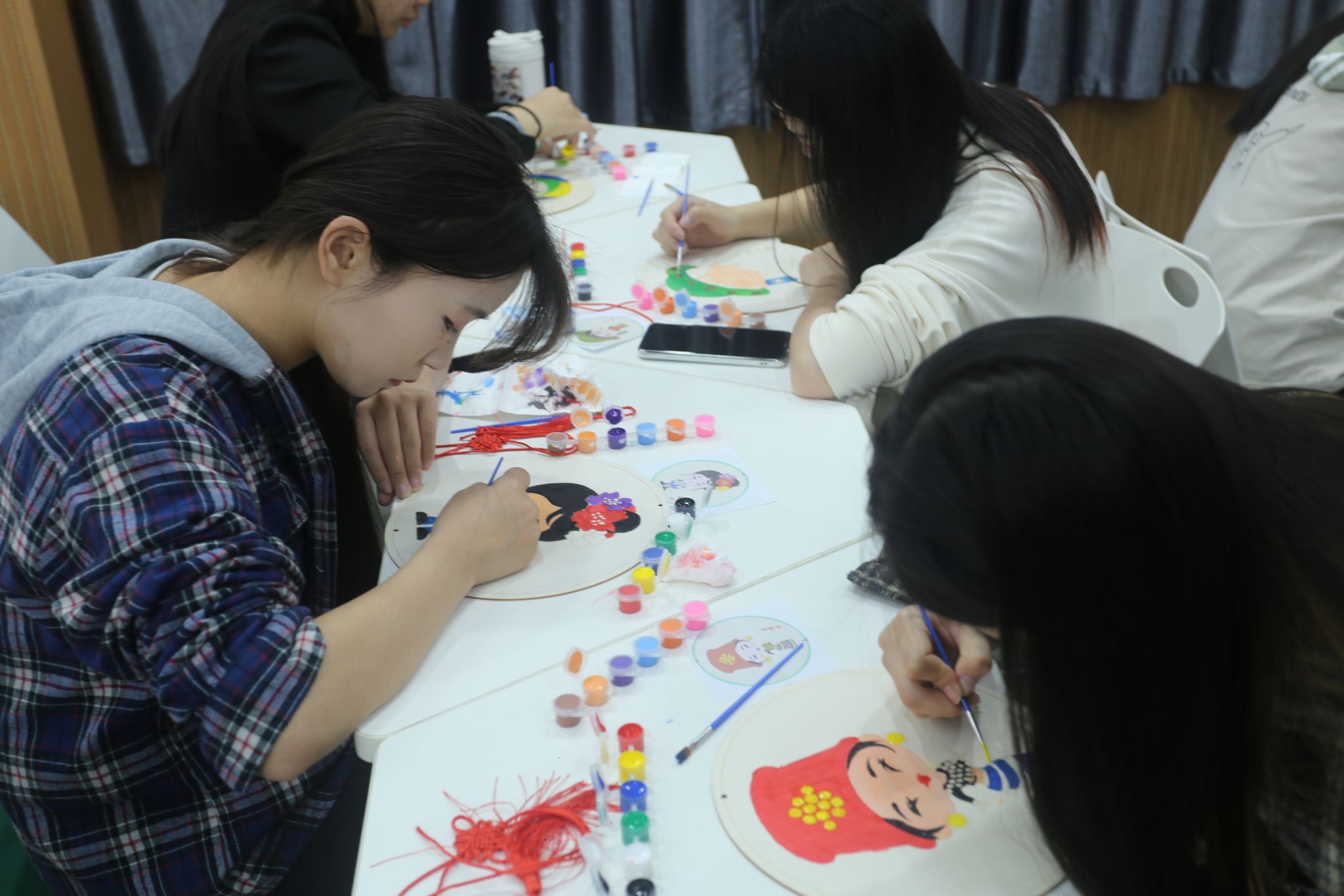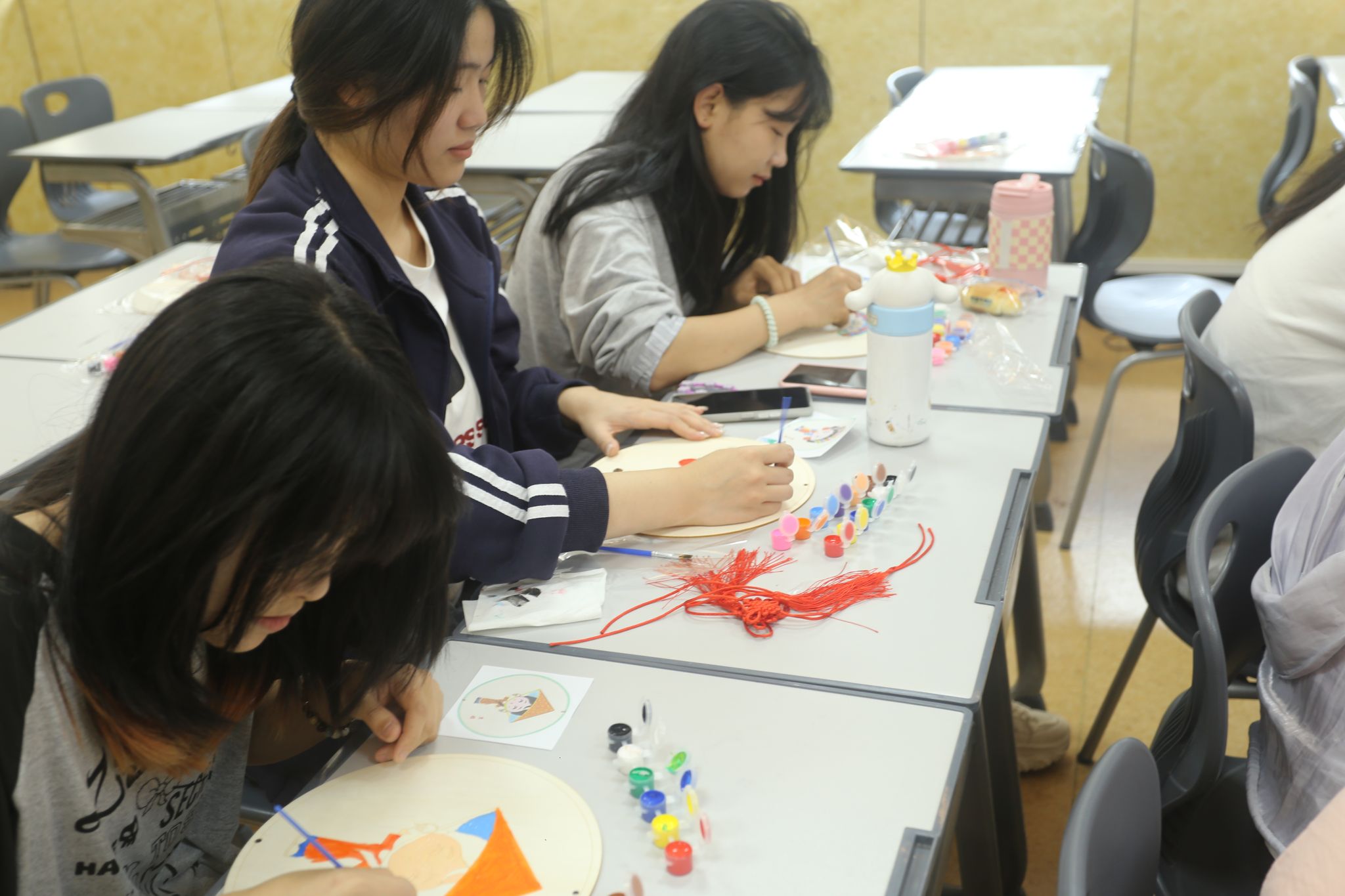 3 月 25日,二轻学院在教学楼(2)204、205 开展手工 DIY 民族绘画挂件活动。参与绘画的同学们通过自己的双手,绘制出刻有 56 个民族图案的木质国风民族绘,展现了中华民族的多元一体。