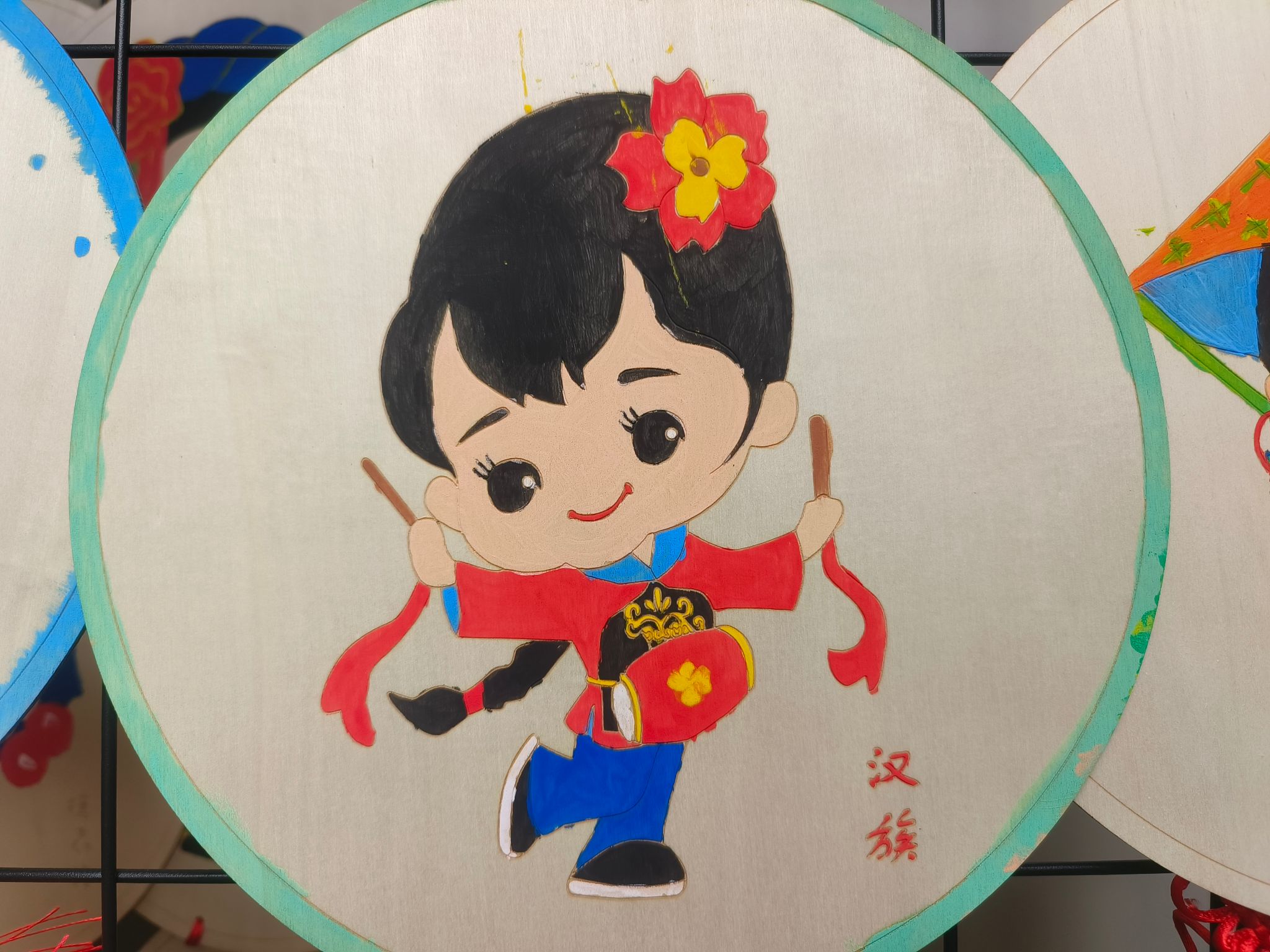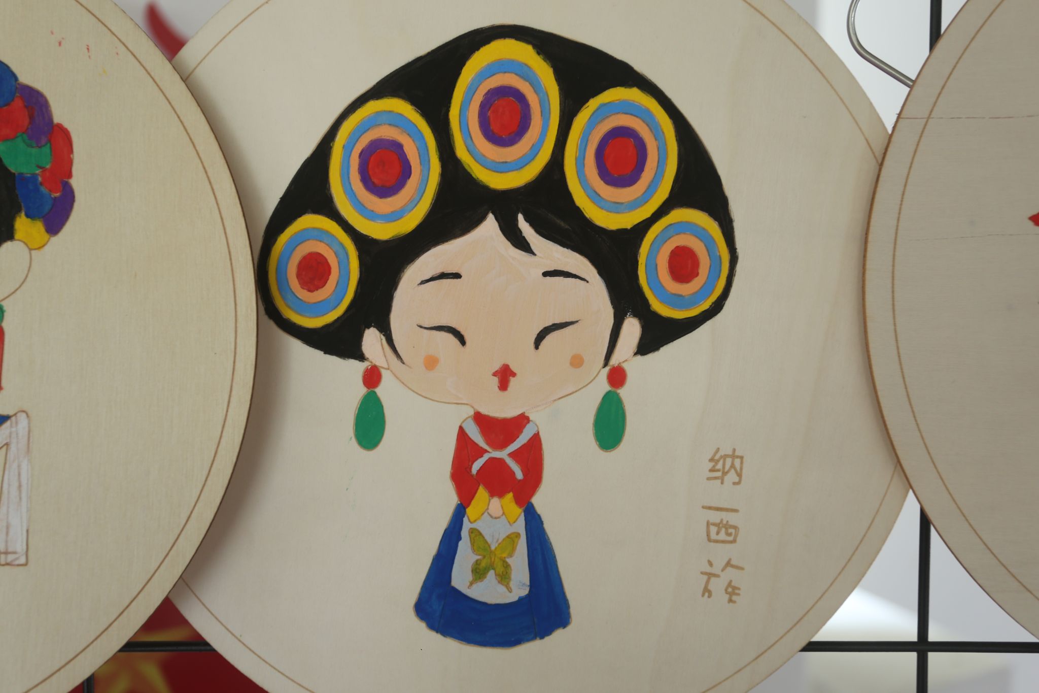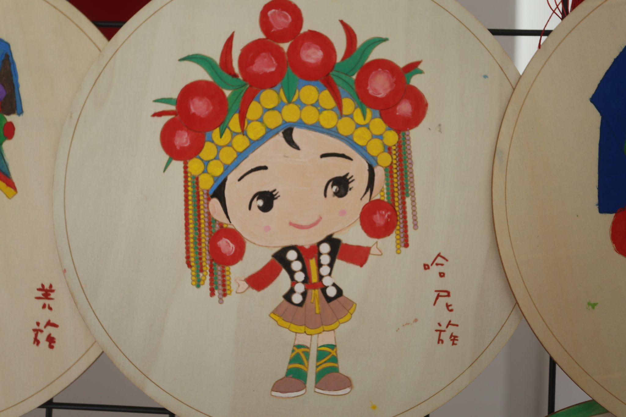 经过前期的准备与现场的制作,一幅幅精美的木质国风民族绘逐渐呈现在大家眼前。这些作品虽然风格各异,但都生动地展现了中华各民族的多元文化与独特魅力,加深了同学们对中华民族共同体的热爱与向往。绘画结束后,大家一起将所有绘制的图案挂起来,形成了一幅巨大的中华民族大家庭的画卷,象征着 56 个民族紧密团结、共同繁荣,也寓意着同学们在活动中收获的团结与友谊。