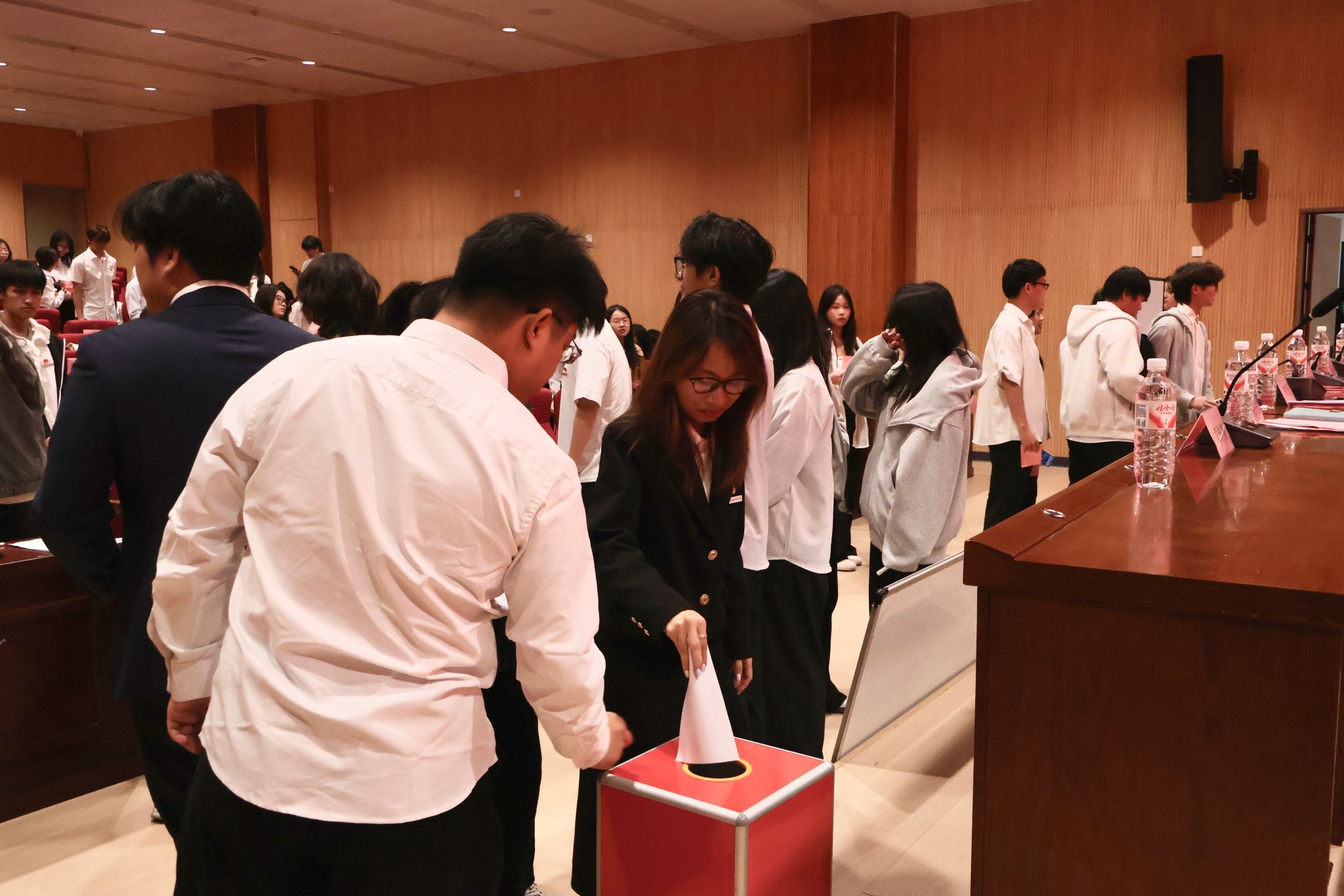 紧接着,大会进入选举环节,大会选举产生了二轻学院第一届团委委员和第一届学生分会主席团成员。
