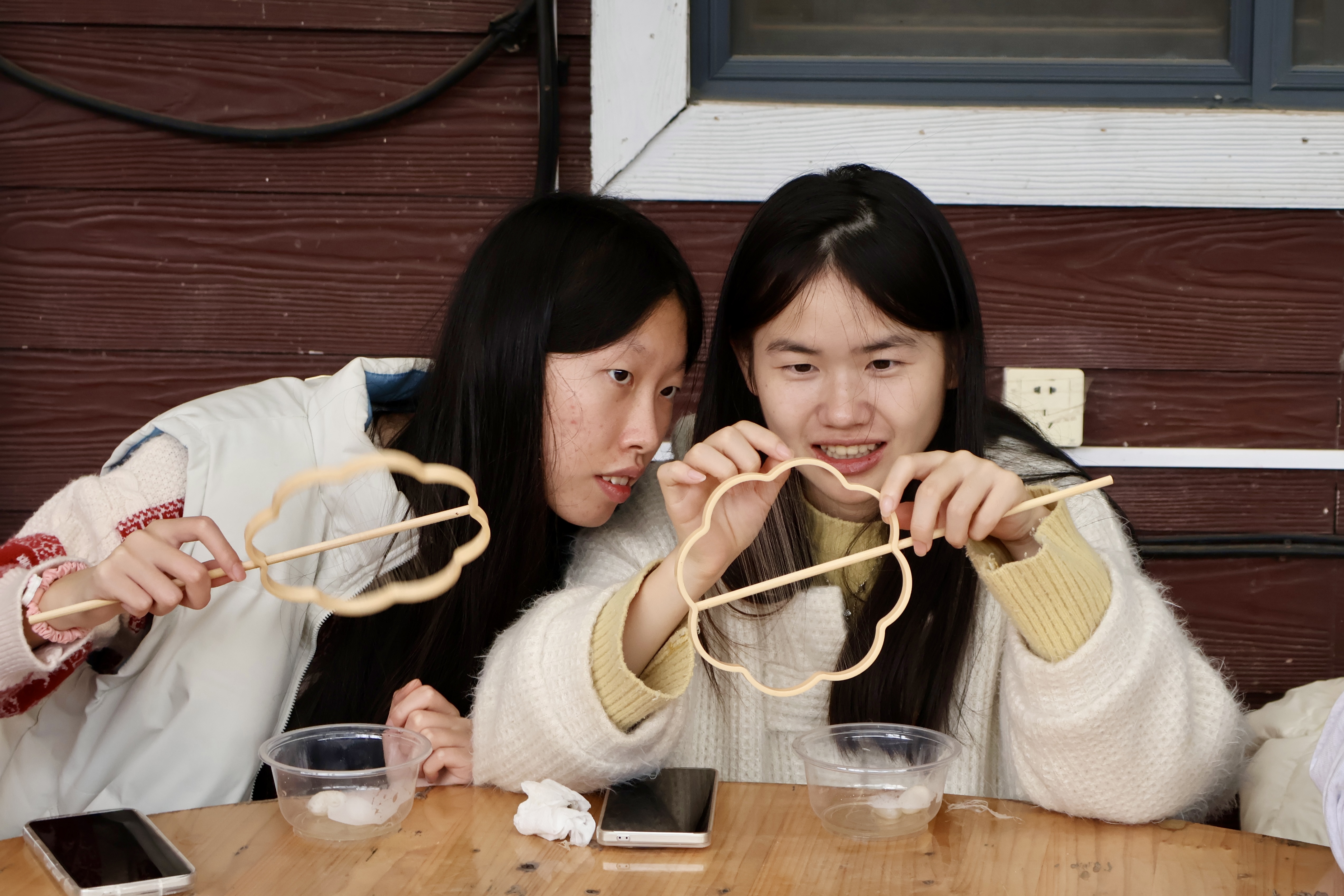 师生们首先体验了蚕丝扇的制作工艺。大家围坐在桌前,在老师的悉心指导下,学习抽丝、绕架、固定等传统制作工序。一丝一缕缠绕的过程,不仅考验同学们的耐心与细致,更让大家近距离地领略了传统丝织工艺的精妙。这一柄柄亲手制作的蚕丝扇,不仅承载着对传统手工艺的传承,更成为这个寒冬里独一无二的温暖纪念。