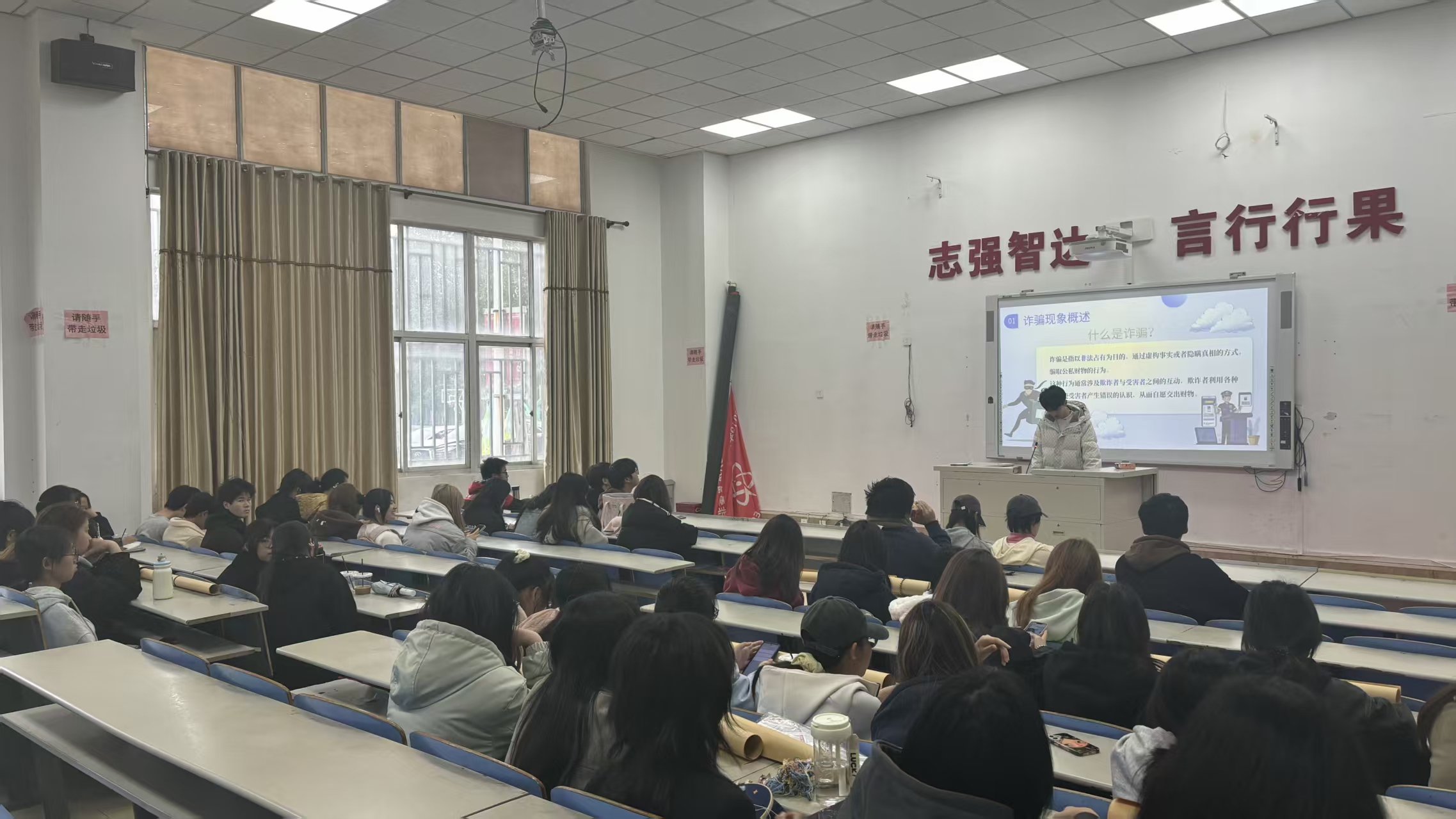 为切实提升同学们的法律知识和素养,筑牢校园法治安全防线。12月中下旬,24级、25级各班级开展以普法教育为核心的系列主题班会,重点围绕防诈骗、防校园贷等热点现象展开,引导同学们在学法、守法、用法中走好成长之路。