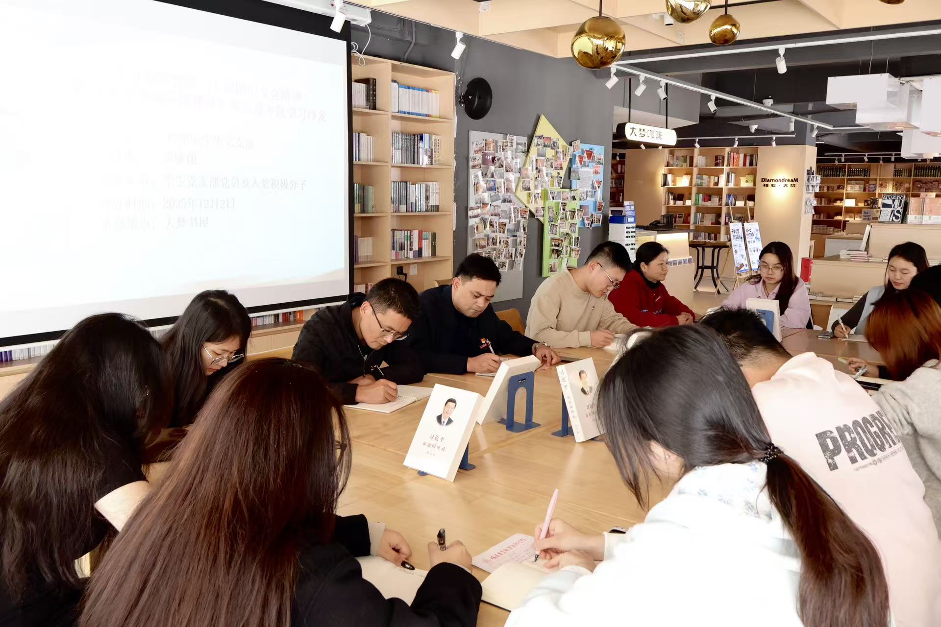 12月2日下午,二轻学院学生党支部为深化理论学习,在大梦书屋组织开展“学习贯彻党的二十届四中全会精神暨《习近平谈治国理政》第五卷专题学习沙龙”主题党日活动。学院党总支副书记(主持工作)张一宁、副书记吴伯文、组织员陈敏和学生党支部全体党员、入党积极分子共同参与,围绕党的创新理论展开深入学习与交流。