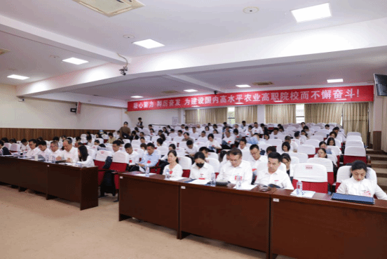 院长何东进在本次大会上作题为《站高谋远 凝心聚力 奋楫争先 全力推进学院改革发展新征程》的报告。报告指出,在过去的五年里,学院坚持以习近平新时代中国特色社会主义思想为指导,全面履行“为党育人、为国育才”办学使命,党建和各项事业发展取得明显进步,综合实力和办学水平显著提升,农业职业教育特色更加凸显,培养了一大批“一懂两爱”的高素质技术技能型人才,为乡村振兴、农业发展、农民富裕作出积极贡献,谱写了学院党的建设和事业发展的崭新篇章。