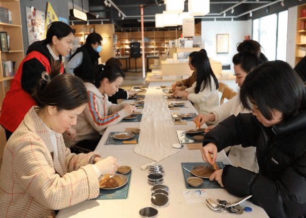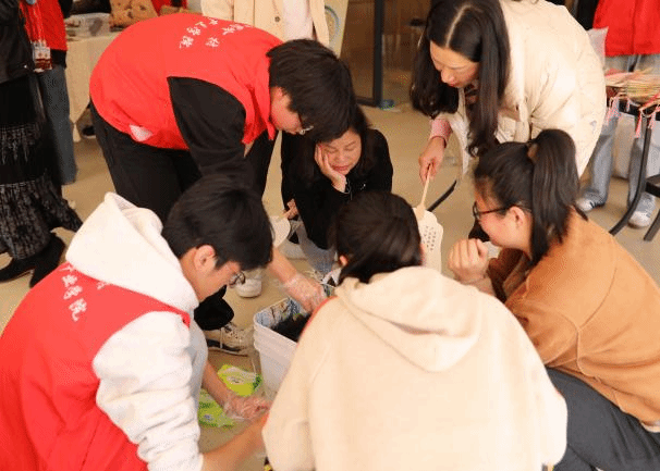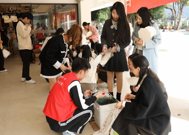 移步“非遗传承 向美而生”漆扇制作区域,传统与创意悄然邂逅。女教职工们将油彩滴入水桶,色彩在水中晕染交融,随后,将扇面浸入水中,油彩附着其上,晾干后便诞生了独一无二的漆扇作品,手中轻握的是精美漆扇,揽住的满溢艺术格调的曼妙时光。在这里,与非遗相伴,向美而行,在大梦书屋前镌刻下自己的文化记忆,让传统之美在指尖熠熠生辉,融入生活的各个角落。