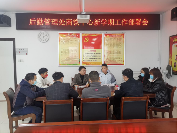 2月17日下午,商饮中心在后勤管理处会议室召开新学期工作部署会,会议由后勤处孙震龙老师主持,围绕新学期商饮保障工作就常态化疫情防控、厉行节约,反对浪费、食品安全、日常工作及提升商饮网点内涵建设等五个方面进行了部署。