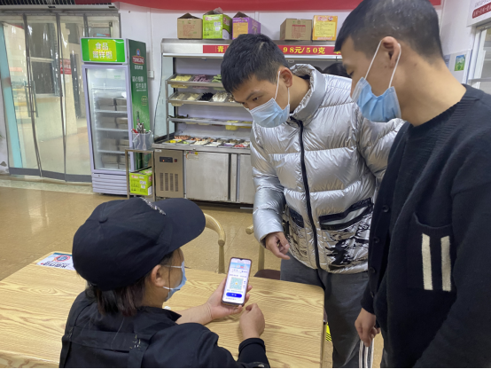 根据最新疫情防控部署要求,3月22日,商饮中心林世榕老师例行检查校内各商饮网点的消毒消杀、定期通风换气、卫生清洁、做好日常晨午检记录;常态化开展疫情防控宣传教育和网点从业人员培训,校内佩戴口罩,不聚集、“一米线”等情况;严格落实“应检尽检”“适时抽检”的从业人员的健康码、核酸检测时间、行程码。