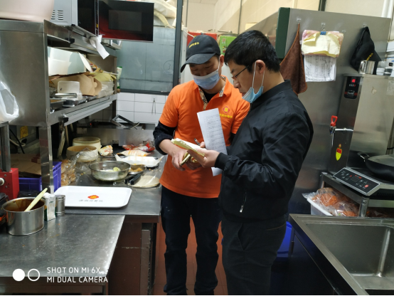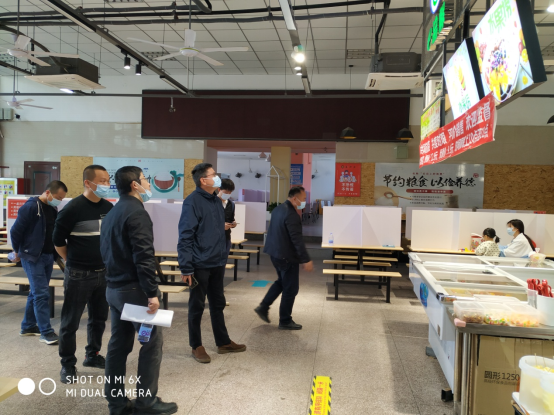 检查组深入两个校区食堂详细检查各食堂档口在当前疫情形势下的各项防控措施及食品安全工作落实情况,同时围绕食堂食品安全体系21项指标等进行了现场检查指导,对发现的问题和隐患提出整改要求,明确主体责任。