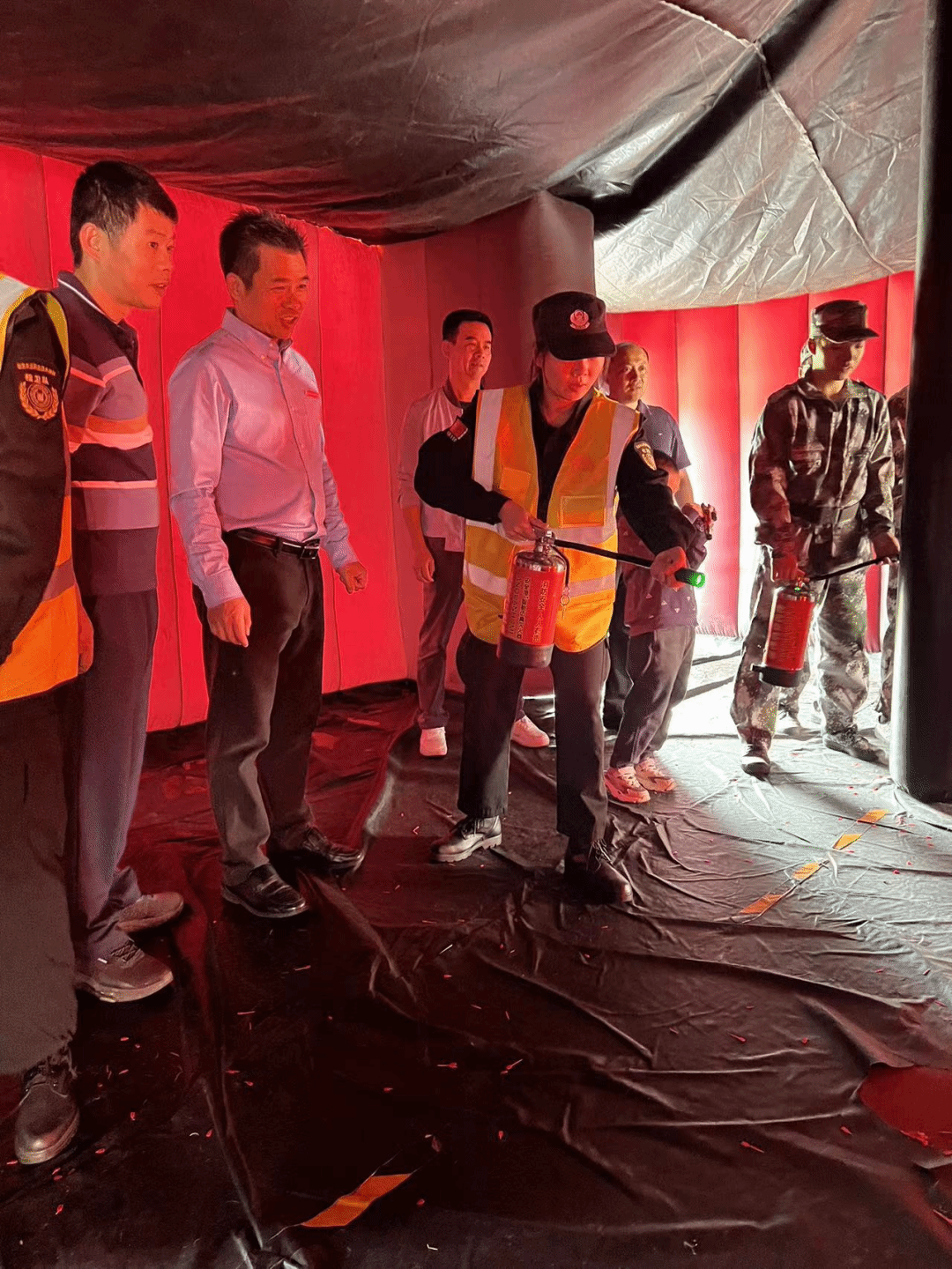 在活动现场,专业的消防培训人员先为同学们详细介绍了灭火器的使用方法和逃生技巧,而后组织同学们进入模拟灭火场馆和消防逃生场馆进行模拟体验。镜洋镇消防站的消防员则为同学们展示了各种消防器材的使用方法,并邀请同学动手体验。通过一系列的培训、体验活动, 同学们基本掌握了灭火器的正确使用方法、逃生的正确姿势,了解了常用消防器材的使用,提升了消防应急能力。
