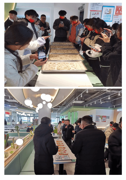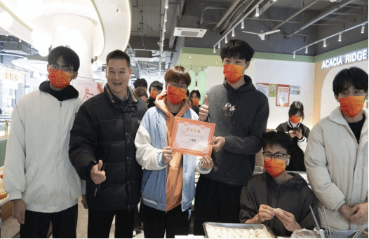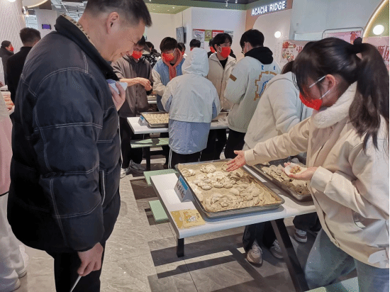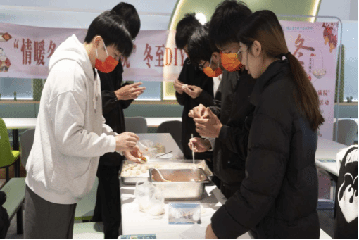 各参赛队伍围绕冬至主题奇思构想,进行限时才艺大比拼。经过参赛队员们齐心协作,一盘盘由各种造型和图案并貌的艺术品饺子呈现在师生们面前。创作者展现的想像力和技艺,将中国传统节日的文化内涵深深地映入同学们的心里。随后,参赛队伍兴高采烈地向评委嘉宾们介绍参赛的饺子作品。