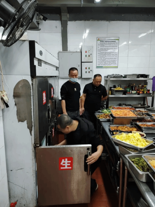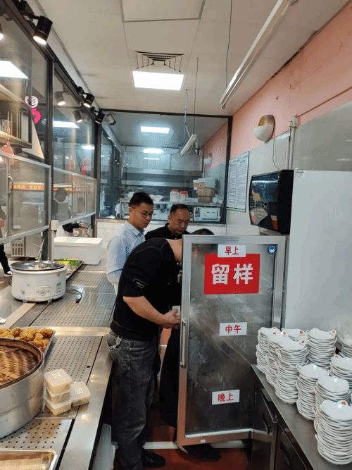 在首山校区,福州校区管委会相关负责同志详细检查了首山校区学生餐厅食品安全管理情况,实地深入食材储藏间、操作间查看食品卫生和食物留样等食品安全措施落实情况,要求餐厅各档口要严格执行各项规章制度,注意用电、用气安全,用心守护学生“舌尖上的安全”。