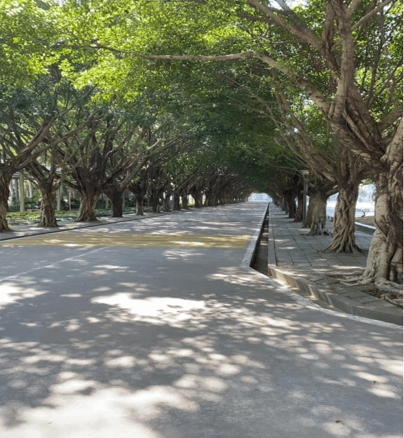 对林荫大道两旁的树木进行了修剪并将落叶进行了清扫。目前林荫大道两旁的树木郁郁葱葱,繁密的绿叶在阳光下摇曳生姿,如同一幅画卷。