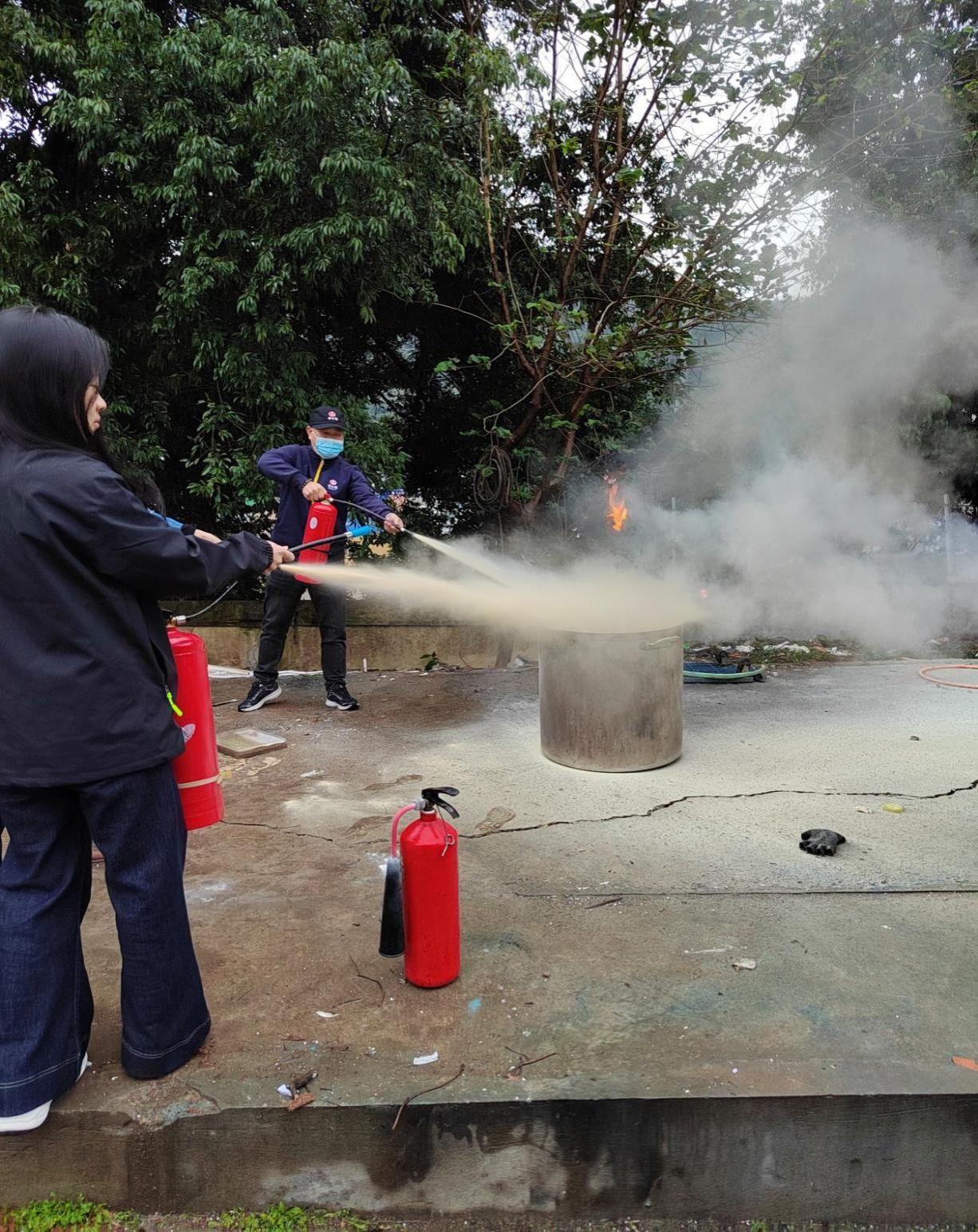 最后,全体人员到达消防演练场地进行现场灭火和应急逃生演练。通过活动,提高了从业人员的消防安全水平,提升了从业人员应急逃生能力。