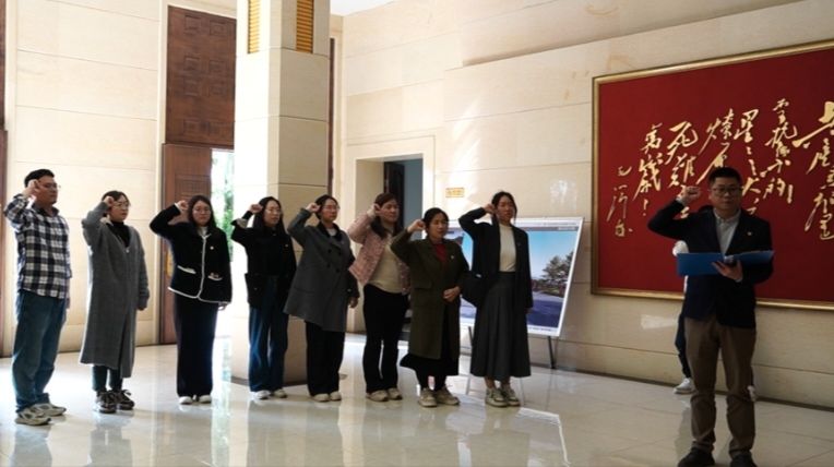 祭扫仪式结束后,全体师生在讲解员的带领下参观二七烈士纪念馆,仔细聆听林祥谦烈士的英勇事迹,深切感悟先辈们坚韧不拔的革命信念和顽强拼搏的斗争精神。党员同志们庄严地举起右手,一同重温入党誓词,铿锵有力,声音在纪念馆内久久回荡。