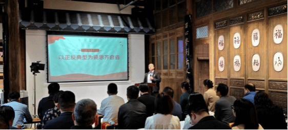 本次活动特邀三坊七巷家风家训馆副馆长、特聘高级讲师林华为全体党员作了主题为《家有清风,幸福常在——存正心、守正道、养正气》的专题讲座。林华老师通过分享林则徐、萨镇冰、项南等三坊七巷名人的清廉家风故事,倡导广大党员要见贤思齐、以身作则,把家风建设摆在重要位置,弘扬好中华民族家庭美德,自觉践行社会主义核心价值观,共同推动形成家庭文明新风尚,以家风正促民风淳、政风清、党风端,不断推动党纪学习教育走深走实。
