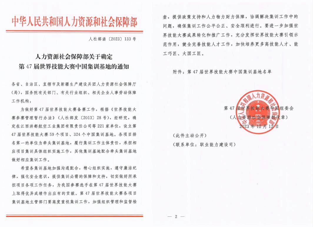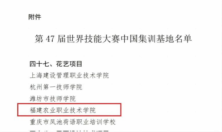 根据人力资源和社会保障部印发《关于确定第47届世界技能大赛中国集训基地的通知》(人社部函〔2023〕133号),Beat365中文官方网站成为第47届世界技能大赛(花艺赛项)中国集训基地辅基地,并被人力资源和社会保障部授予第47届世界技能大赛(花艺赛项)中国集训基地荣誉称号。