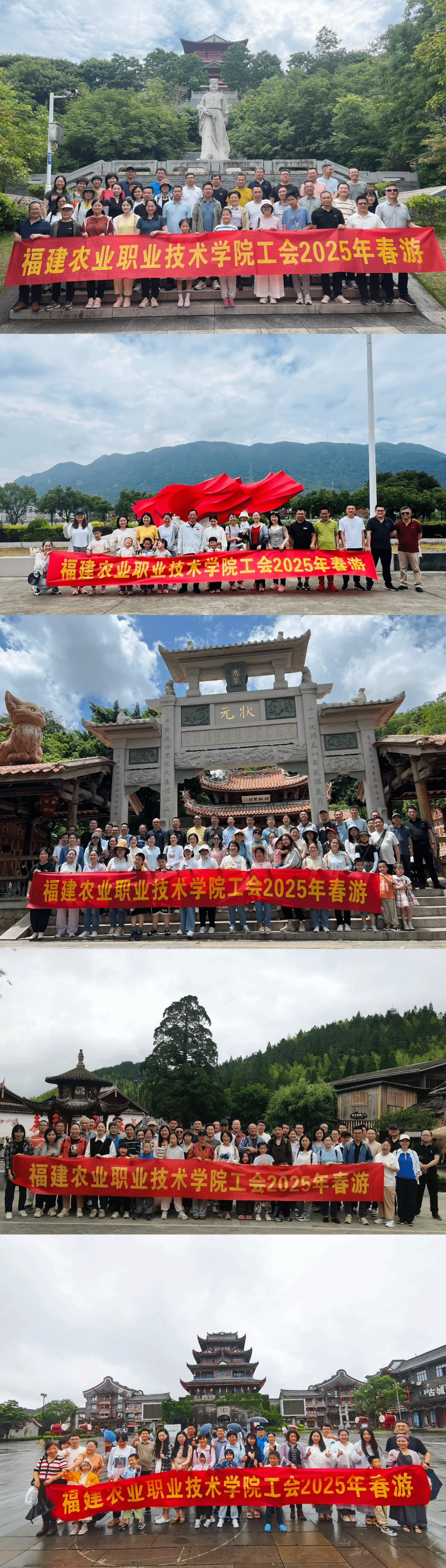 为丰富教职工精神文化生活,增进团队凝聚力,学院工会于2025年5月17日、24日分两批次组织工会会员开展春游活动。教职工们兵分多路,分别前往三明、泉州、平潭、宁德等地,在山水人文间开启春日之旅。