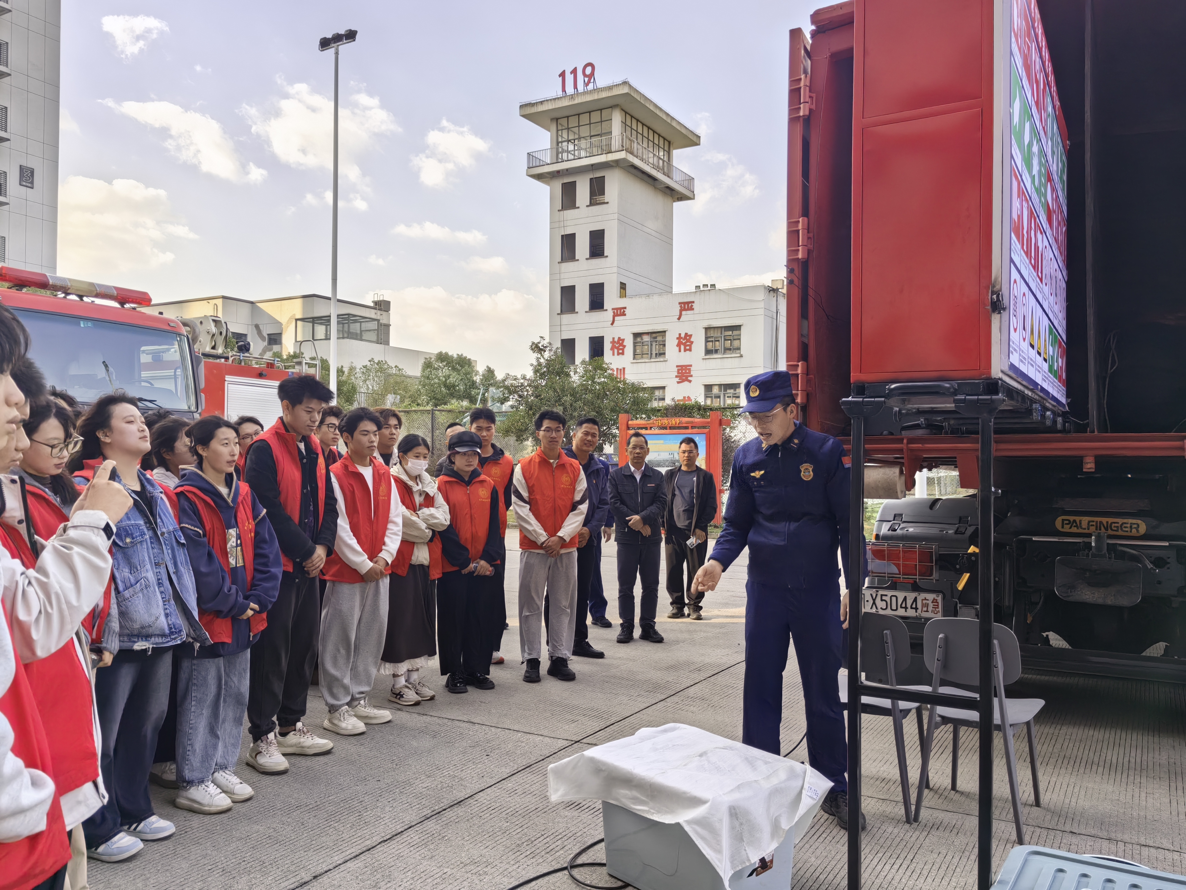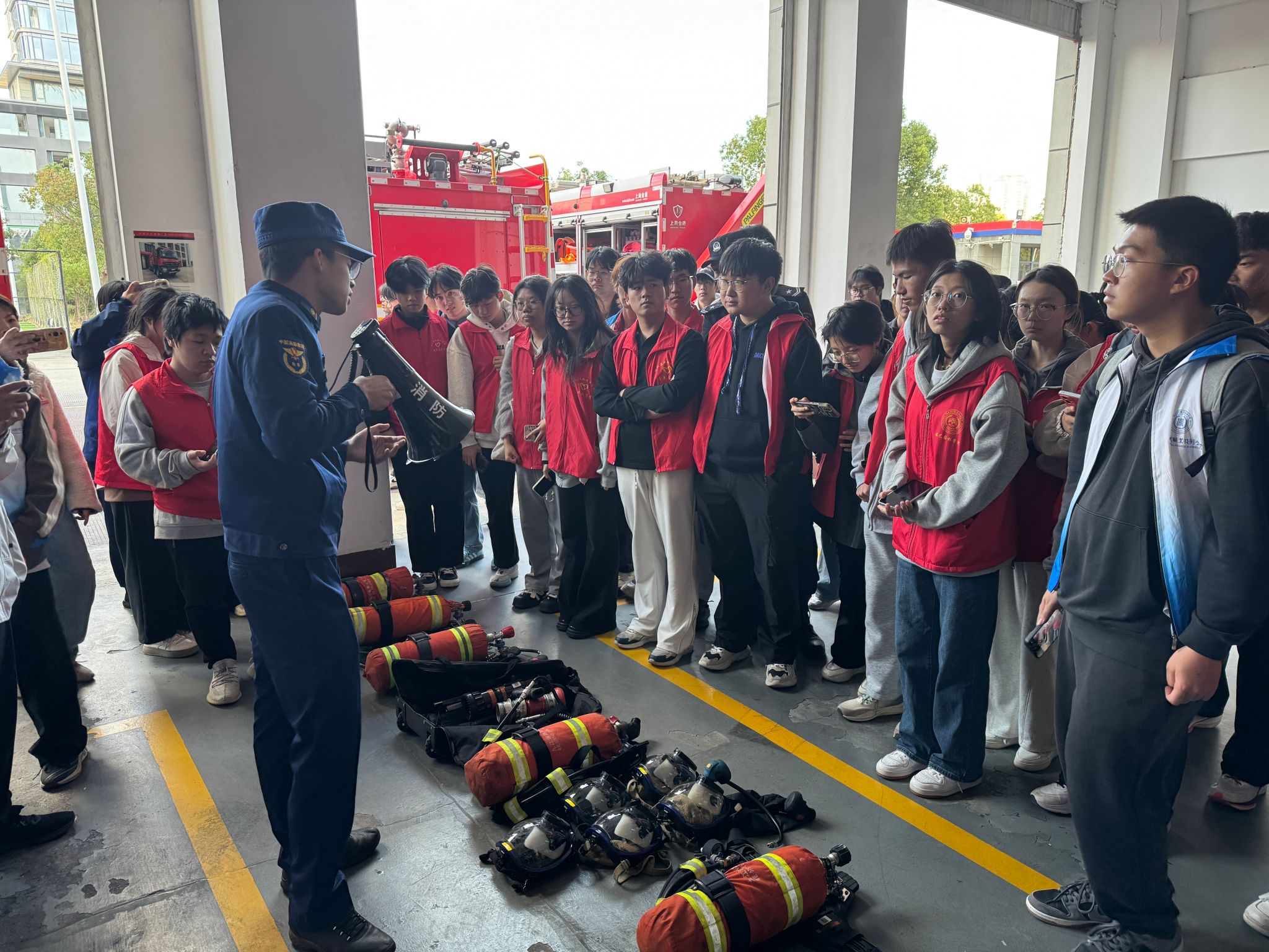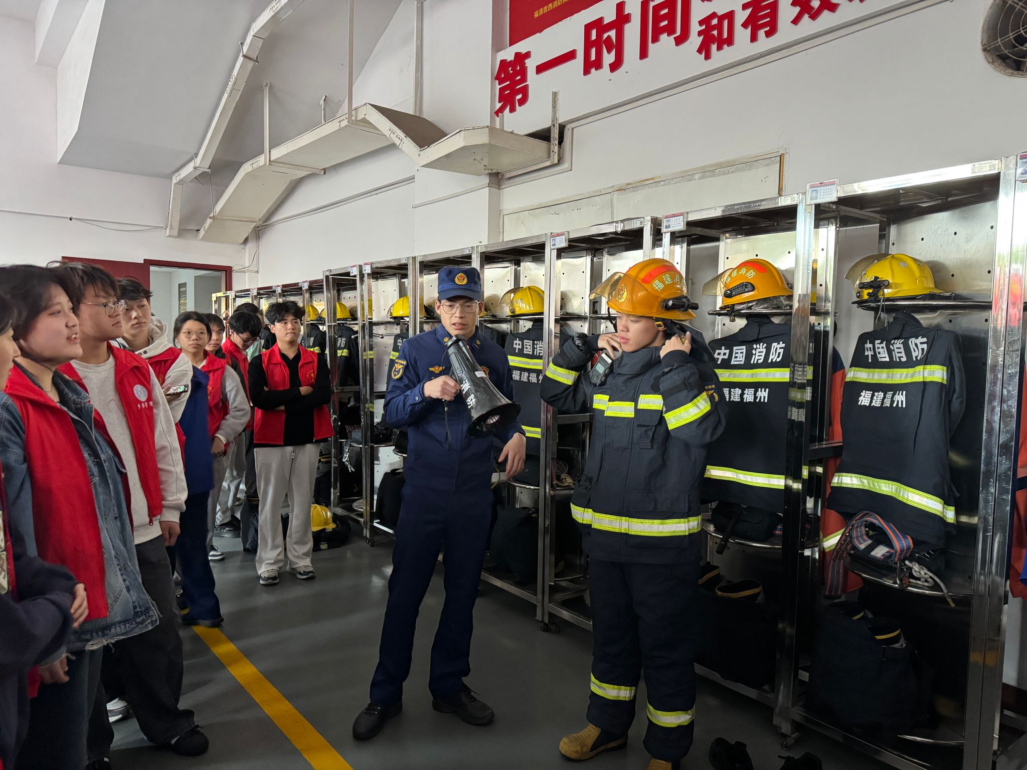 为积极响应全国消防宣传月号召,切实提升广大师生的消防安全意识及应急自救互救能力,2025年11月26日,学院组织100余名师生代表前往福清市消防救援大队营区,开展消防安全教育体验活动。福清市消防救援大队大队长陈艇及消防员们热情接待了师生一行。