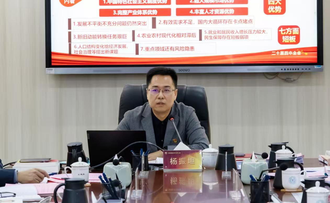 杨振坦在宣讲中指出,学习贯彻党的二十届四中全会精神是当前和今后一个时期的重大政治任务。他强调,全院上下要坚持原原本本学、融会贯通悟、联系实际思、扎扎实实做;要深刻领悟“两个确立”的决定性意义,增强“四个意识”、坚定“四个自信”、做到“两个维护”;要自觉将学院发展融入国家与福建发展大局,特别是要紧密对接“十五五”规划中对教育、科技、人才及农业农村工作的部署要求,找准办学定位,突出农业职教特色,深化教育教学改革,提升人才培养质量和社会服务能力,为谱写中国式现代化福建篇章贡献Beat365力量。