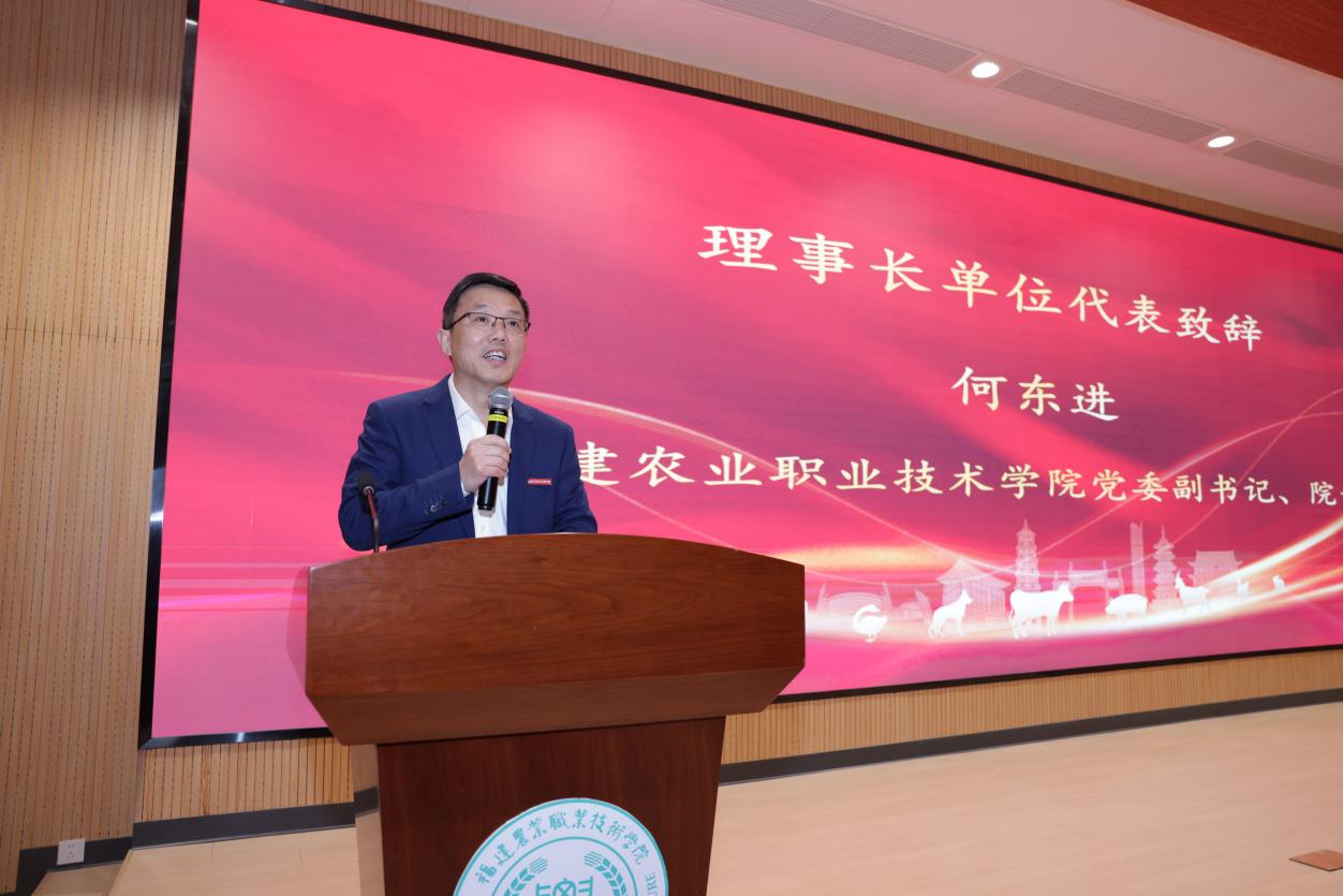学院党委副书记、院长何东进在致辞中指出,共同体自成立以来,始终锚定国家两岸融合发展与职业教育改革战略方向,在机制建设、资源整合、人才培养等关键领域取得扎实成效。他强调,现代畜牧业是乡村振兴战略实施的重要支柱产业,共同体将持续发挥平台枢纽作用,深化校企协同与两岸合作,为行业高质量发展注入强劲动能。