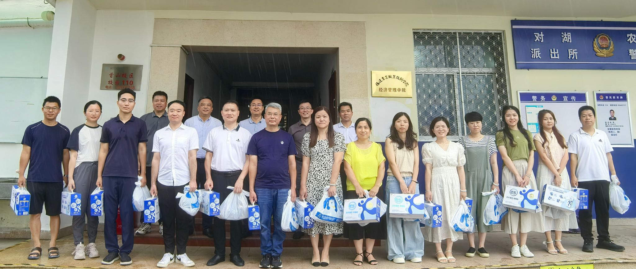 8月23日上午,学院工会开展“工会送清凉”暨暑期慰问高温一线在岗教职工活动。学院党委书记杨振坦、何东进院长在院党委委员、副院长兼工会主席严挺文等陪同下,慰问暑期奋战在高温一线的教职工,为坚守岗位的教职工及工作人员送去防暑降温慰问品以及学院的关心与问候。