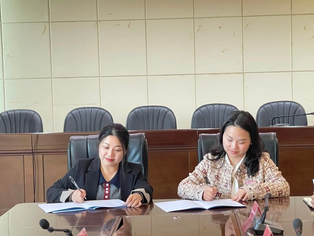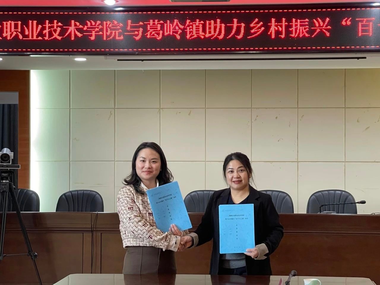 ▲副镇长佘灼儿和Beat365中文官方网站马克思主义学院副院长连淑娇代表政校双方签订合作协议