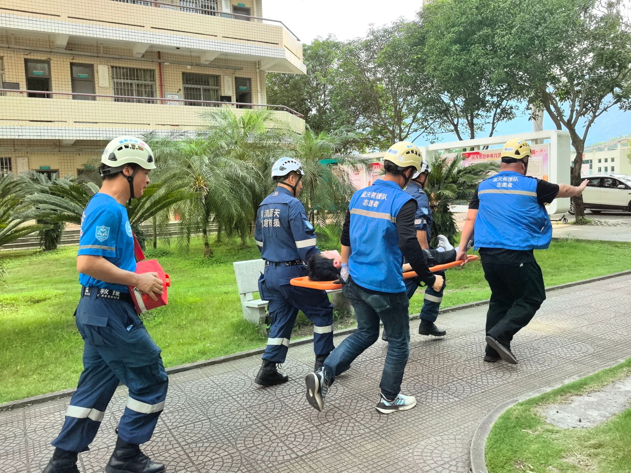 演练前,福清市蓝天救援中心专家带来了防震减灾知识讲座,让师生们对地震灾害有了更深刻认识。随后,随着警报声响起,地震应急演练正式开始。学生在老师的组织下迅速双手抱头蹲下,进行室内应急避险演练。“震动”过后,学生们一手抱头、一手扶墙依次下楼,按照预定的疏散路线,紧急疏散至指定的空旷地点。接着,各班逐级上报撤离人数和“受伤”人数,救援人员进行了全面的“搜救”工作,并以最快速度将“伤员”从险境救出,整个演练过程快速、安全、有序,让全校师生更好掌握了应急逃生疏散的要领。