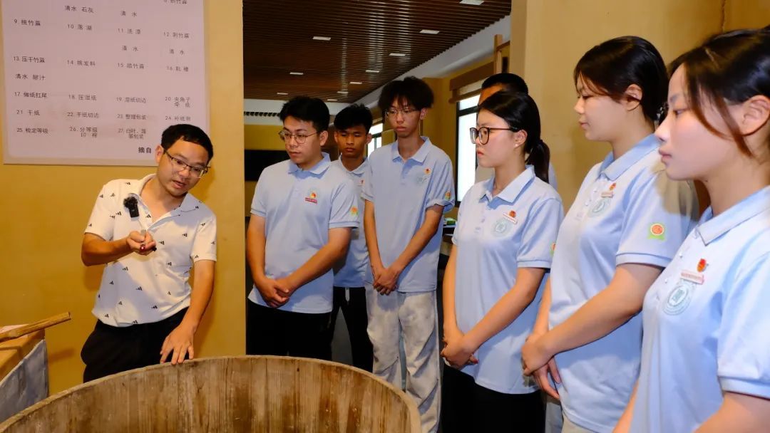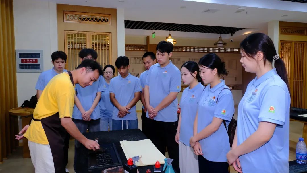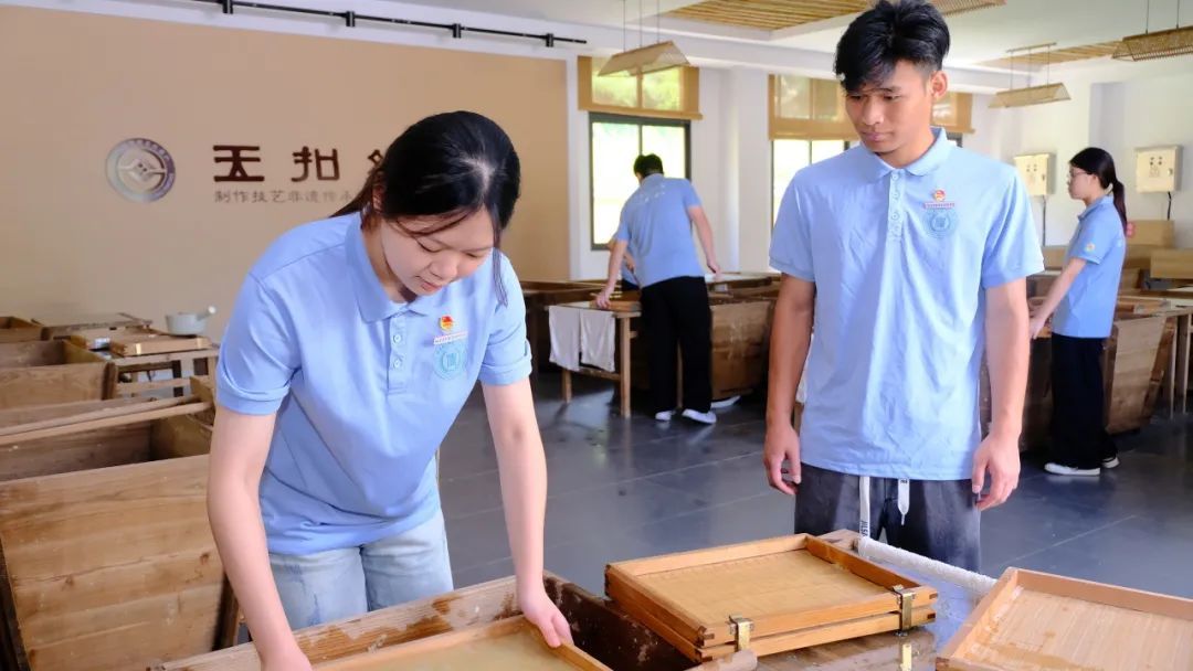 实践队还体验了活字印刷与玉扣纸制作。挑字、排版、刷墨,活字印刷的每一步都充满仪式感;浸帘、捞浆,亲手造出带着竹纤维的玉扣纸,让大家真切感受古人的智慧与非遗的厚重魅力。