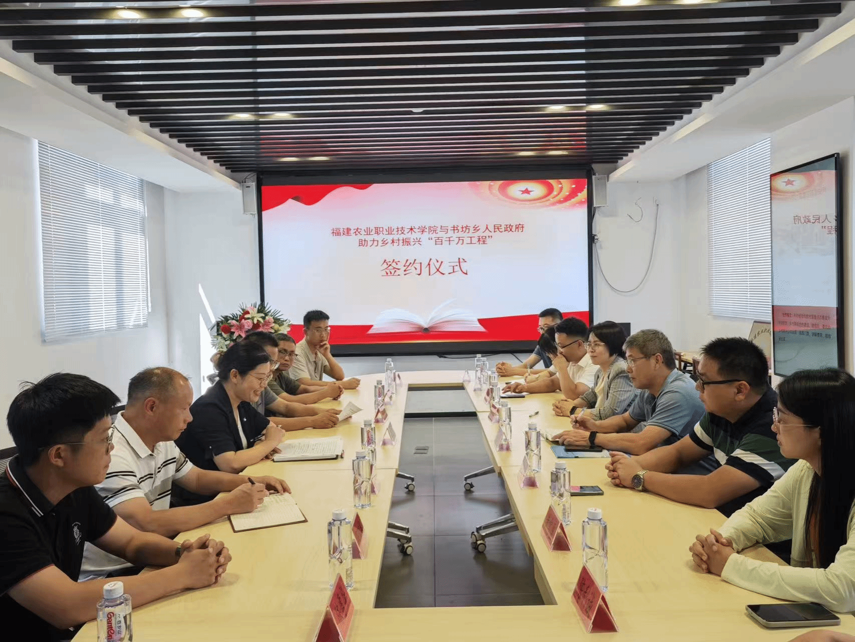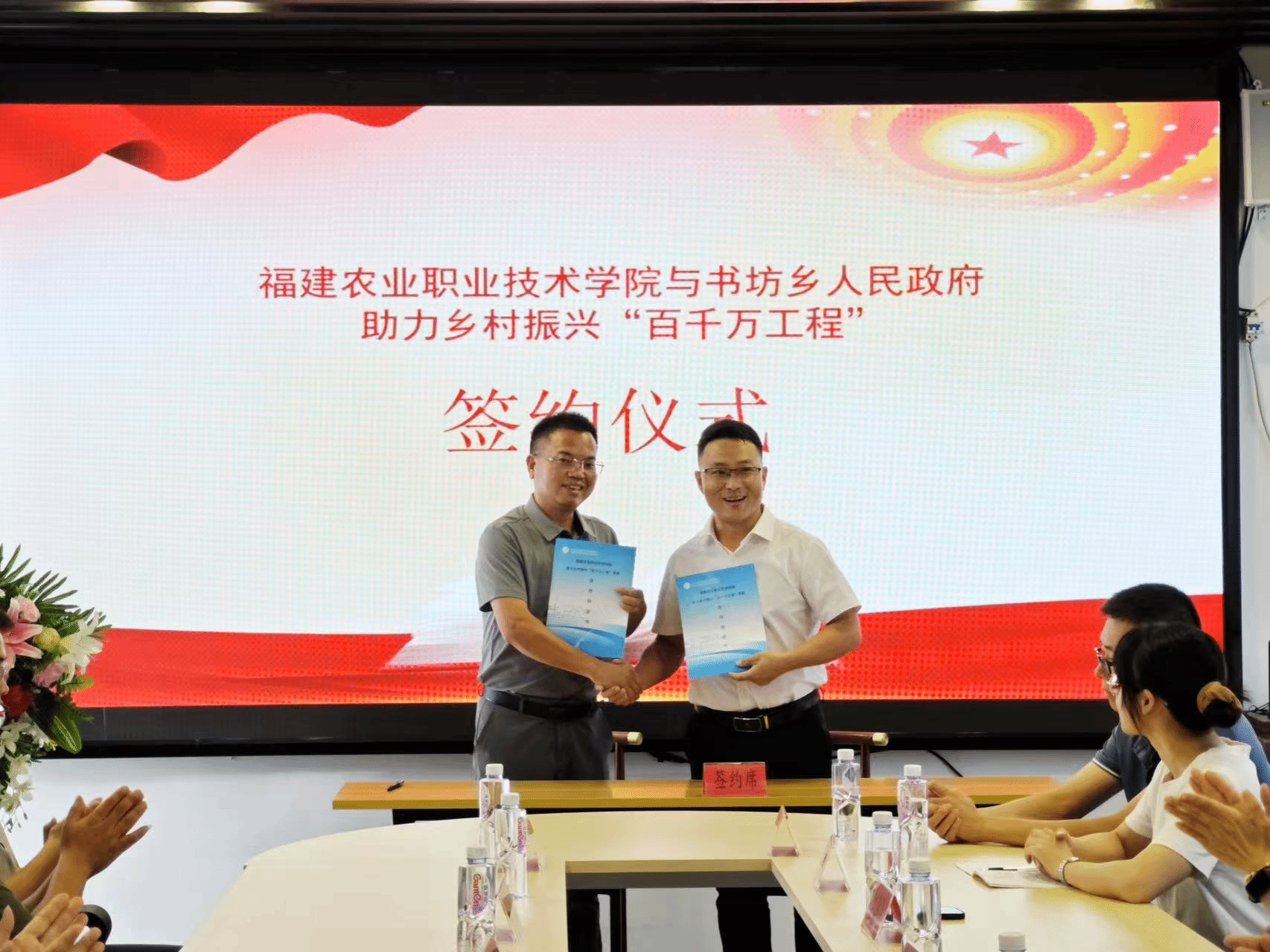 7月24日,书坊乡与Beat365中文官方网站举行“助力乡村振兴‘百千万工程’”签约仪式。福建省农业职业技术学院园艺园林学院党总支书记徐捷,院长王会全及教师团队,建阳区委常委、书坊乡党委书记杨球丽,区政府副区长梅晓飞、魏秀清,区农业农村局副局长陈利诚等参加签约仪式,乡长王东新主持签约仪式。