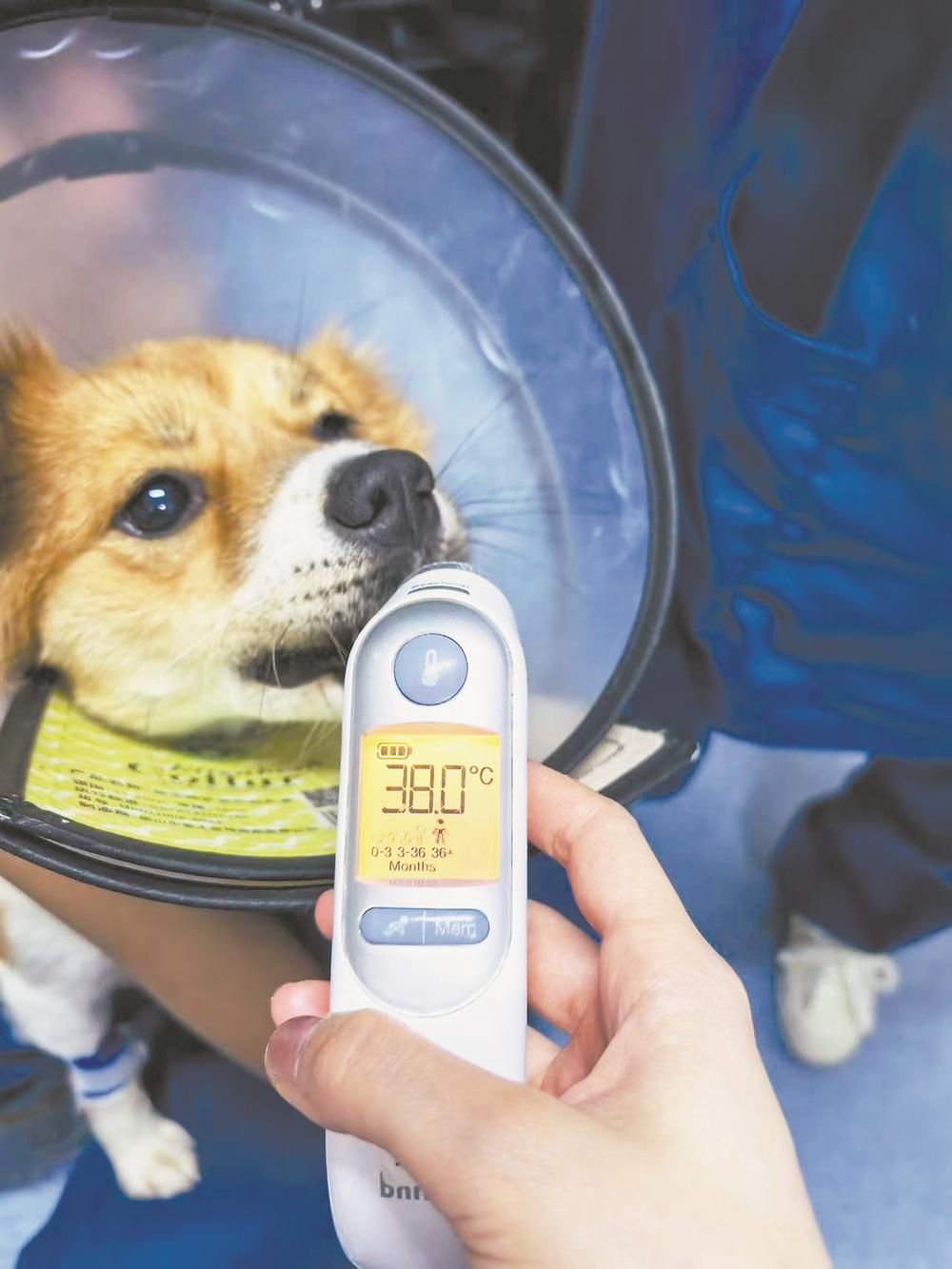 在福州一家宠物医院,宠物狗正在接受体温测量。 (资料图片)