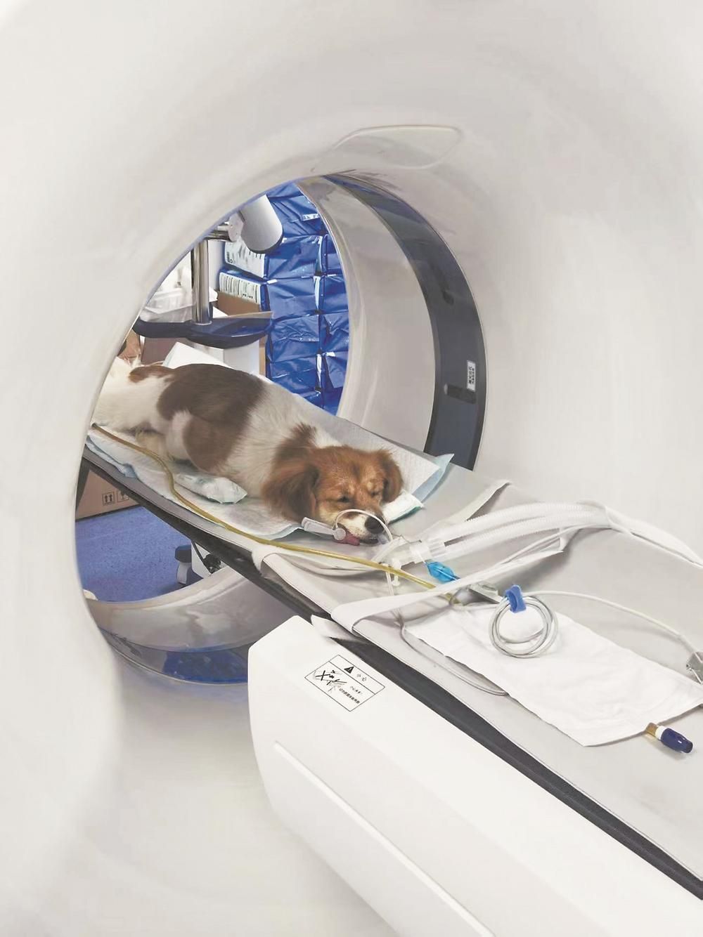 在福州一家宠物医院,宠物狗正在接受CT检查。(资料图片)