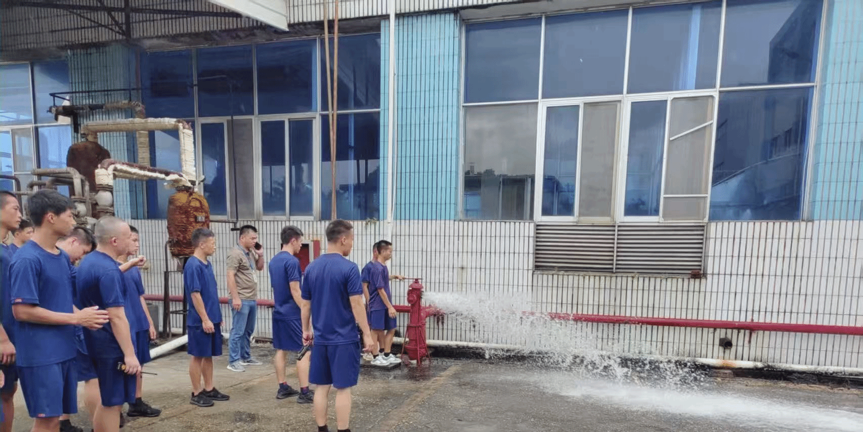 实训教员站在设备前,以通俗易懂又专业的语言,讲解消火栓的工作原理、操作要点与维护知识。从如何快速开启阀门,到水流喷射角度对灭火效果的影响,再到日常巡检需关注的细节,职工们或侧耳倾听,或微微点头,将知识要点牢记于心。讲解间隙,教员亲自示范操作,每一个动作都干脆利落、规范标准,职工们紧盯教员手部动作,生怕错过任何关键环节。随后,大家依次上手实操,在教员的指导下,反复练习开启、调试消火栓。水流喷射的力度与方向,随着队员们的操作不断调整。
