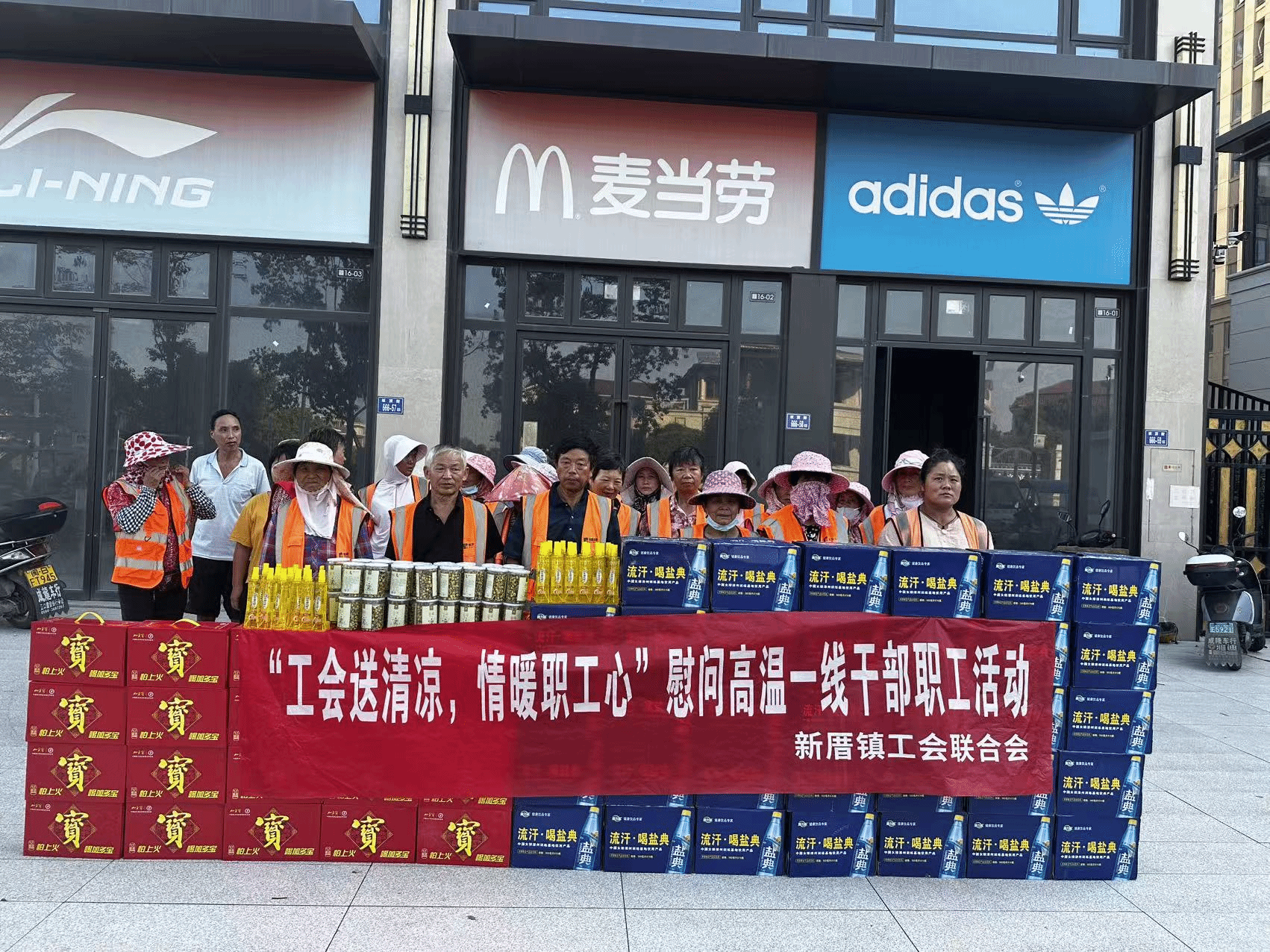 此次活动重点聚焦于在高温环境下辛勤工作的公安、环卫、建筑等行业的一线职工群体。慰问过程中,新厝镇副书记、工会主席包辰带队走访公安执勤点、环卫工作站点、建筑工地等场所,将精心准备的200份防暑降温慰问品亲手送到一线职工手中。每份慰问品都包含了盐典运动饮料、加多宝凉茶、胎菊和花露水等实用物品,既能帮助职工们补充因流汗而消耗的能量和水分,起到清热解暑的作用,也能有效驱蚊止痒,改善夏季工作环境,体现了工会组织对职工细致入微的关怀。
